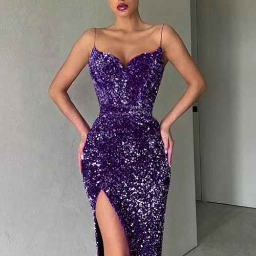 2023 Sequined Sundress Sexy Party Strapless Sling Dress Sequined Straight Skirt Knee Length Dress