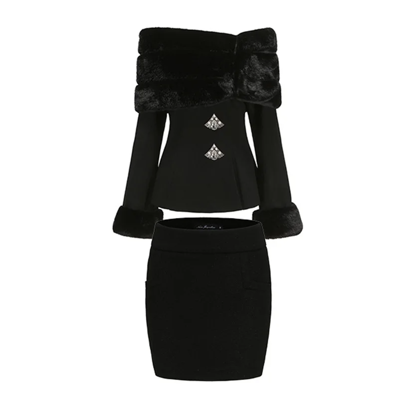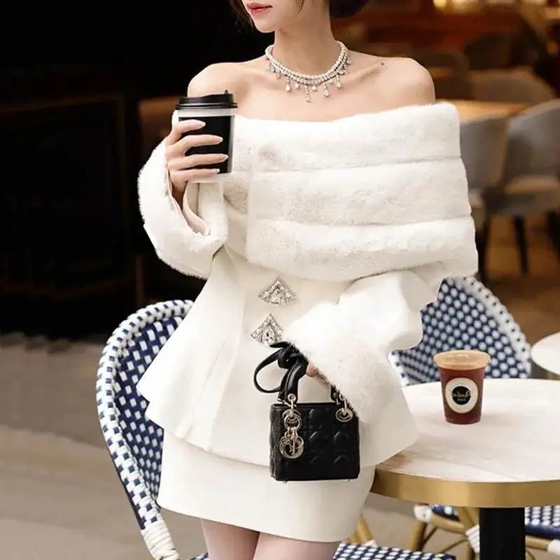 Product Name: 2024 Autumn and Winter Princess Style Simulated Fur Suit Wealthy Heiress Will Wear a Fur Collar Dress