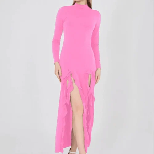 Product Name: 2024 Designer Female High Quality Summer Lady Fashion One Piece Pink Floral Print Sexy a Line Long Maxi Women Dress