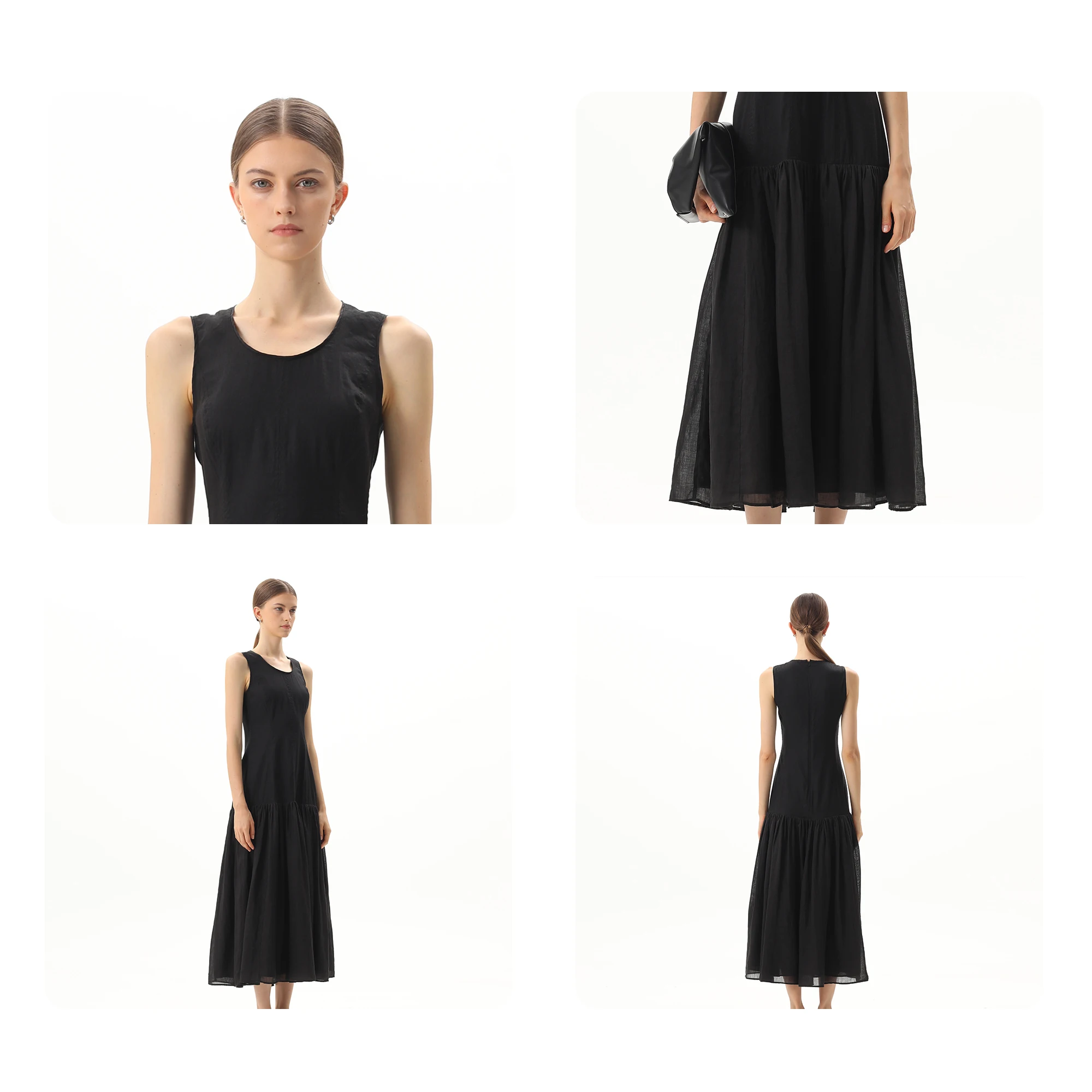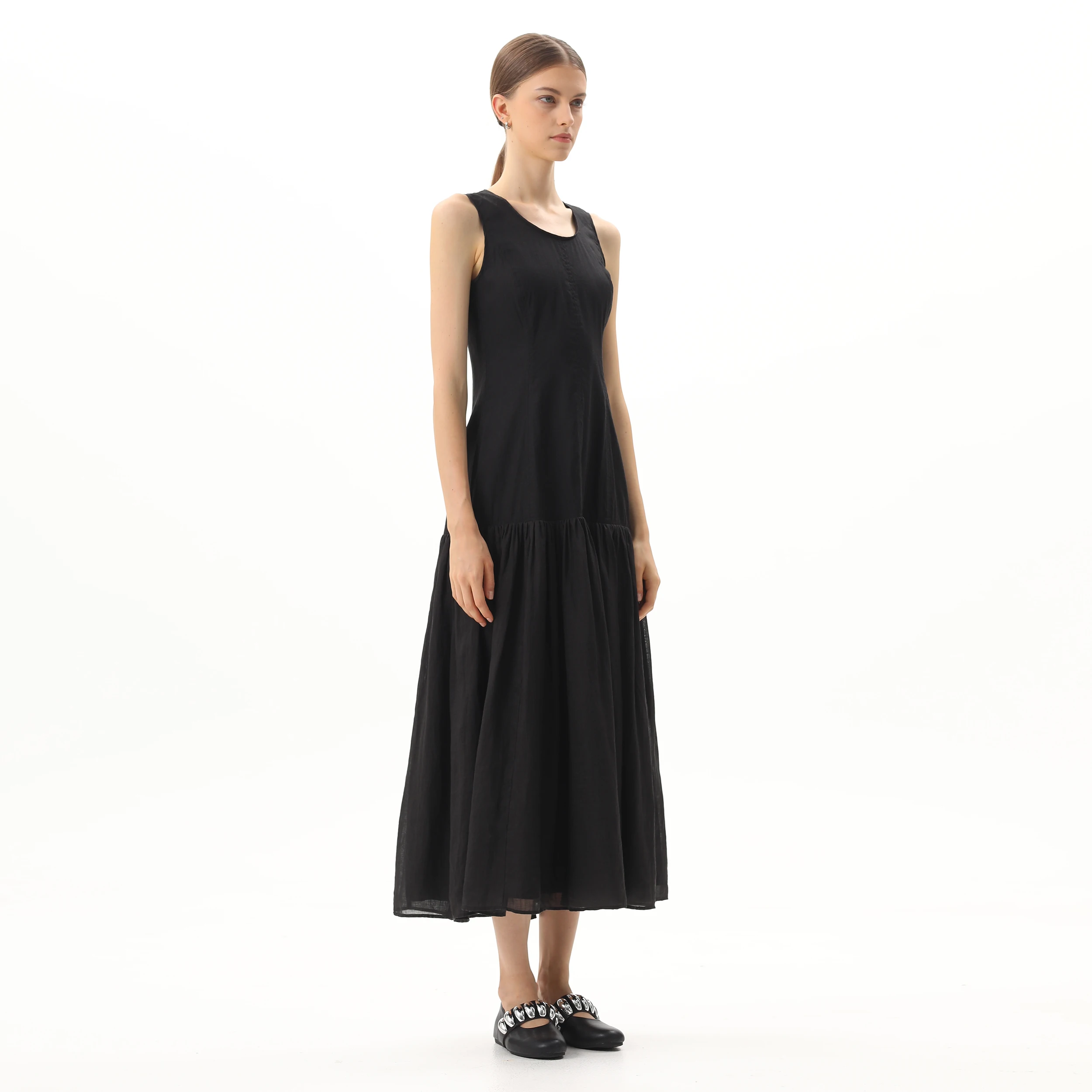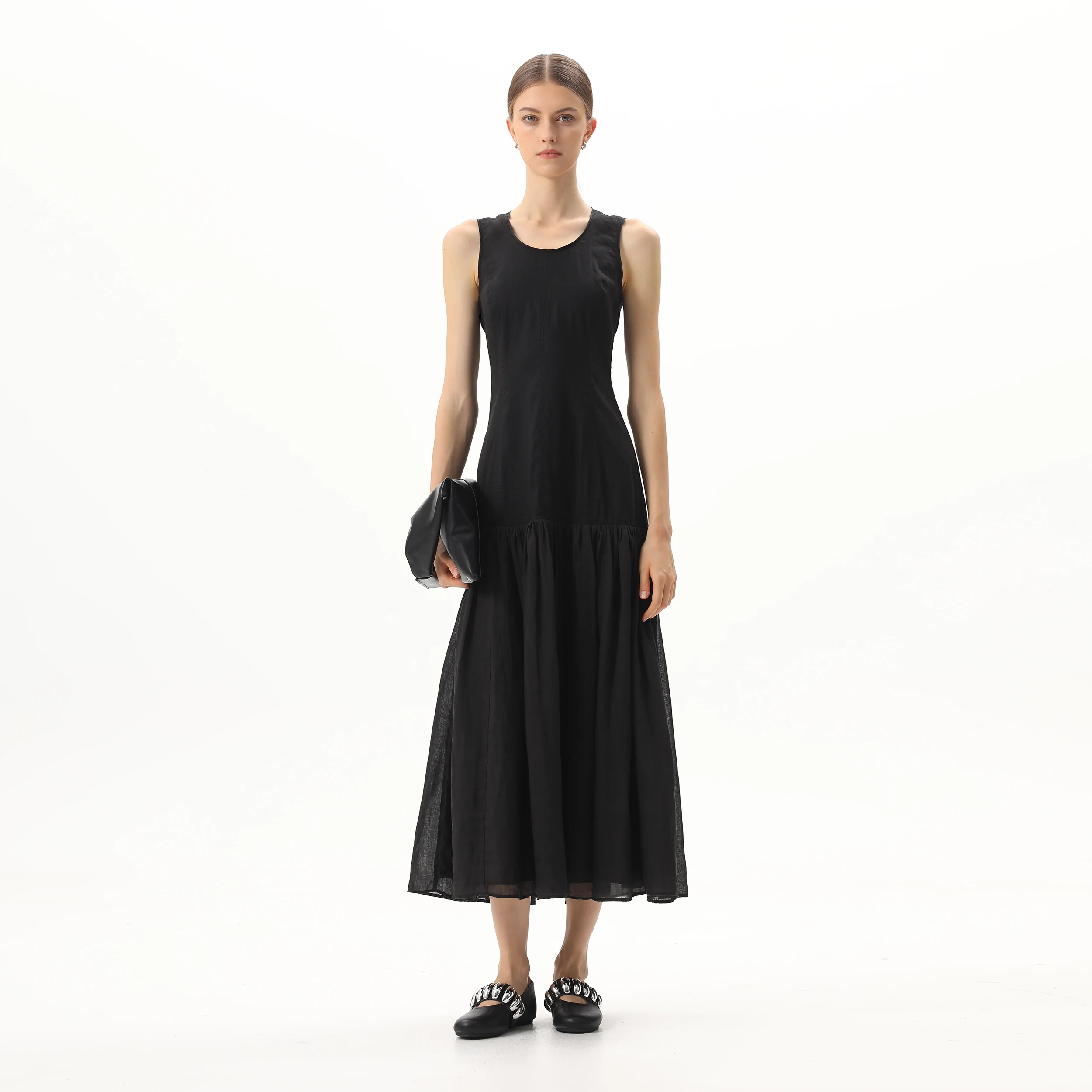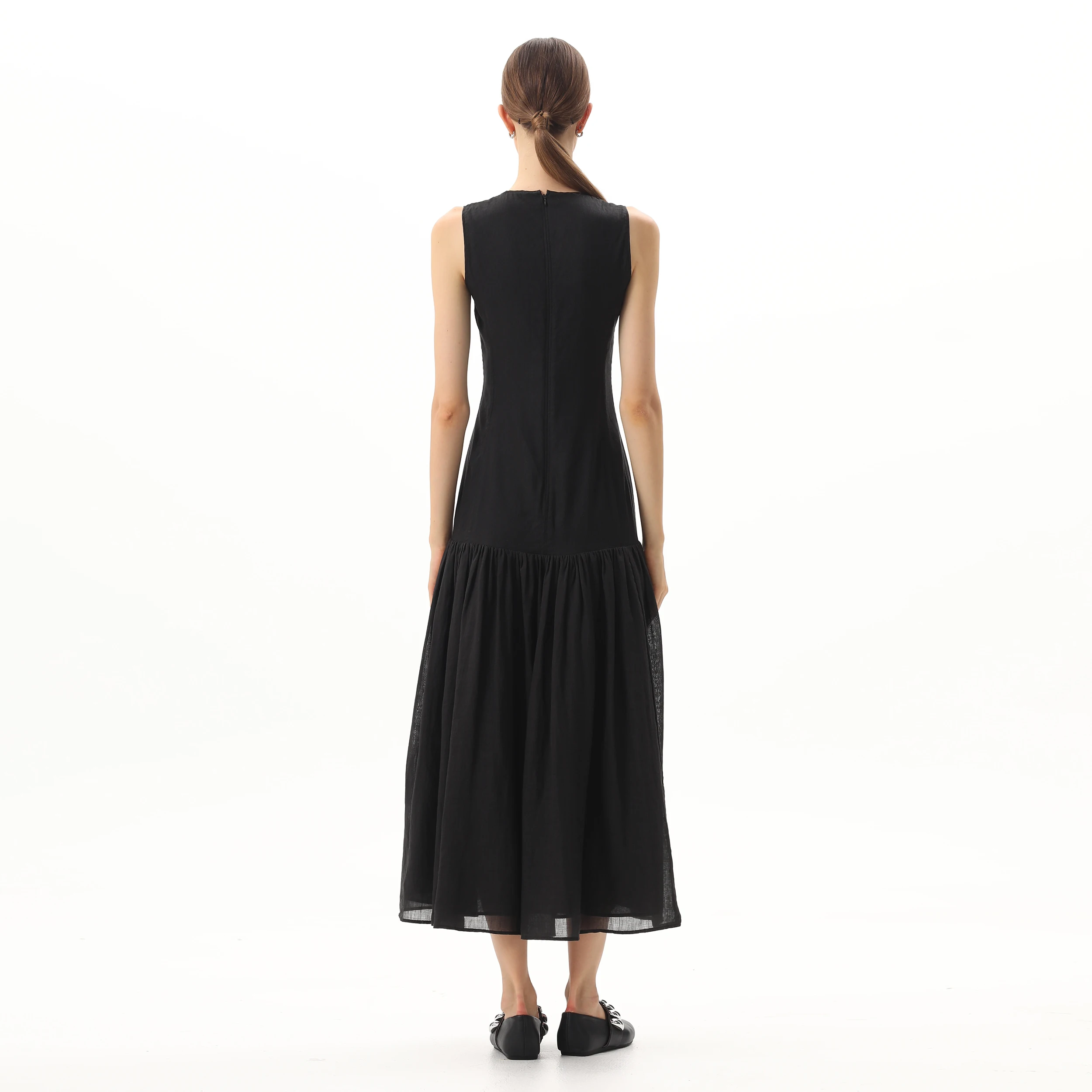 Product Name: 2024 Fashion O Neck Zipper Sleeveless Linen Long Elegant Summer Women Digital Printing Long Maxi Pleated Casual Dresses