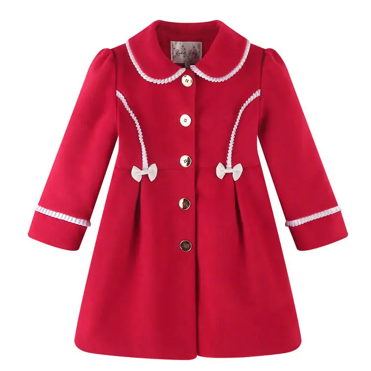 Product Name: 2024 High Quality Cute Red Puffy Wool Mix Dress Coat for Girls for Ages 6 10 12 14 Years