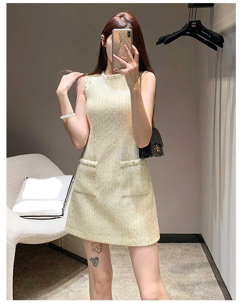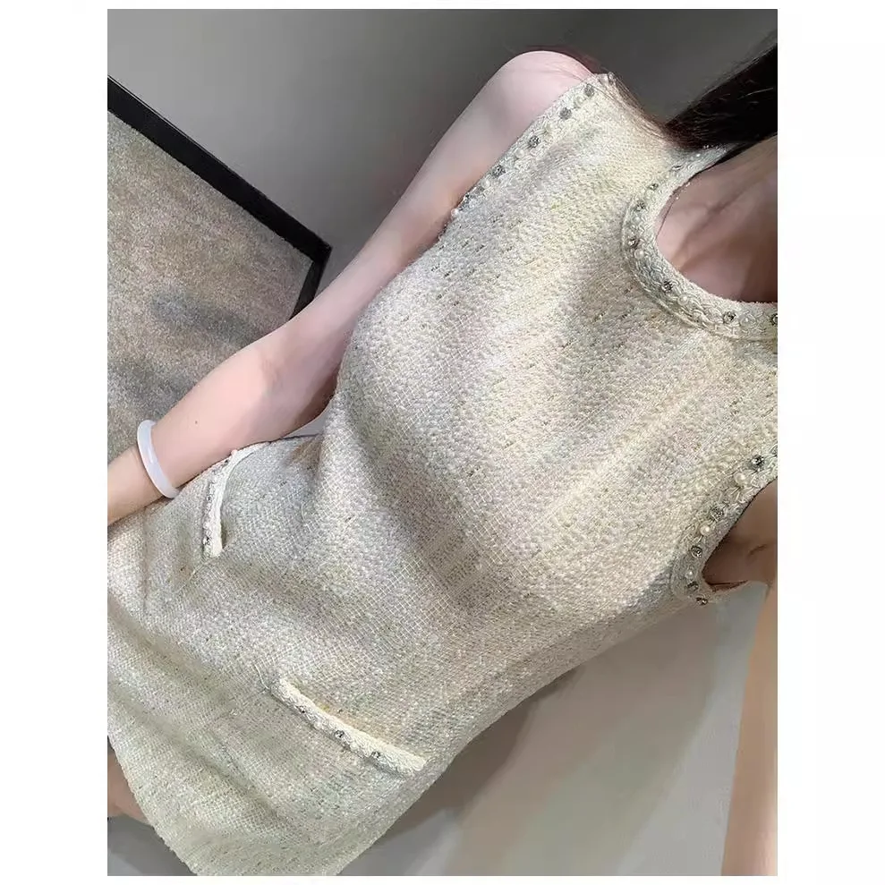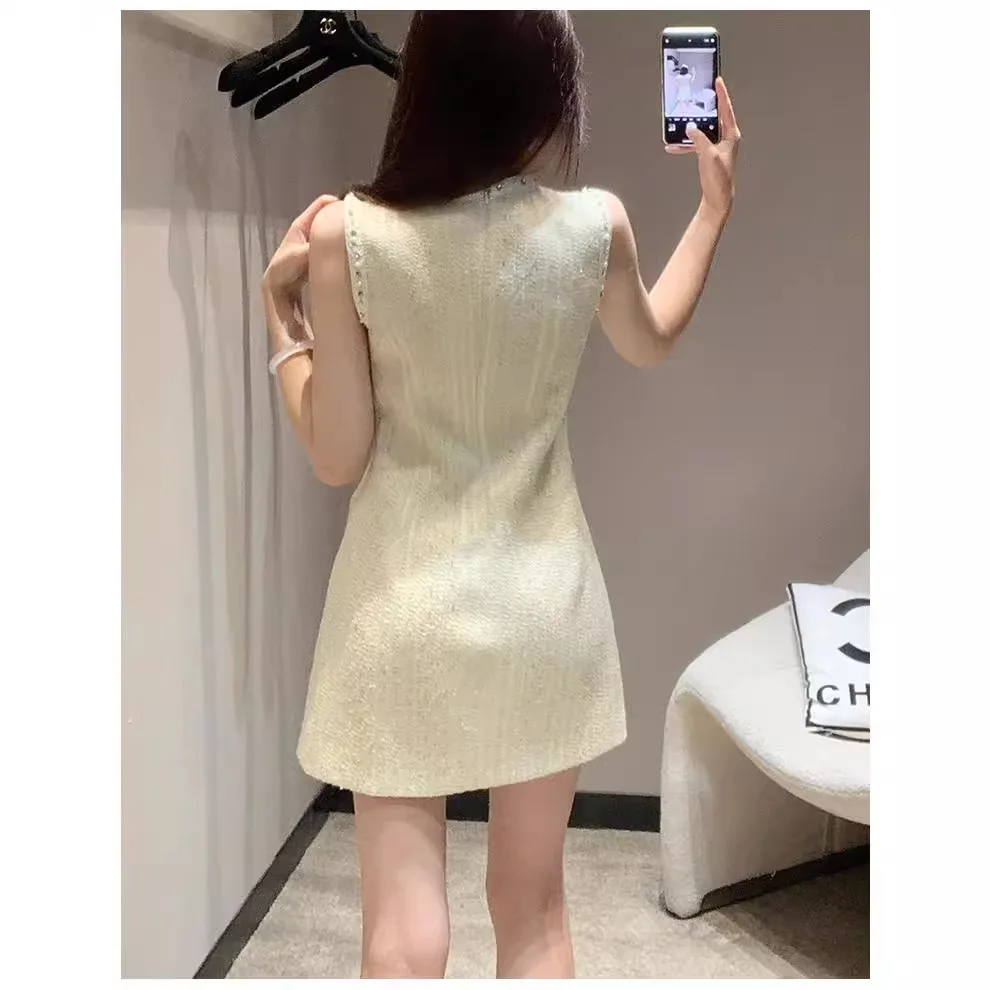 Product Name: 2024 High-quality Temperament Princess Tweed Sleeveless Sundress Heavy Industry Nail Beads Diamond Women Dress