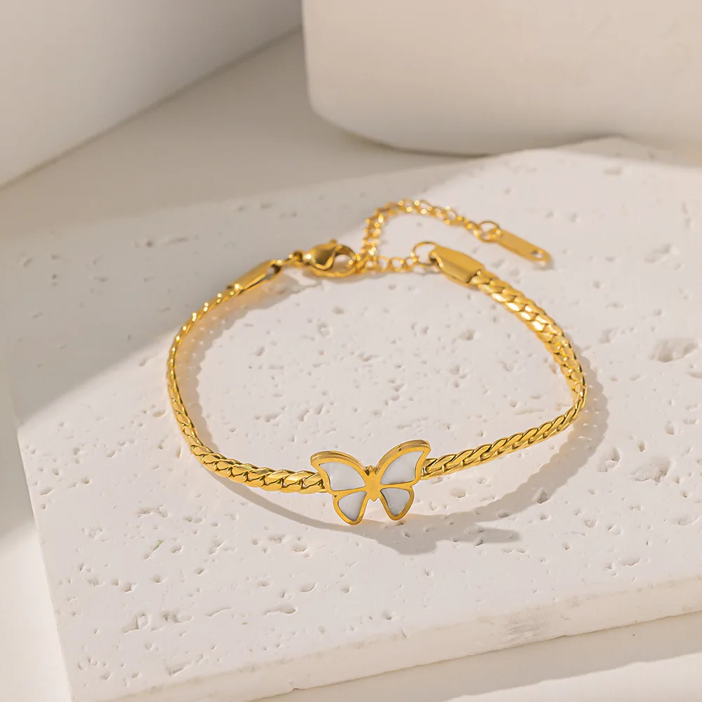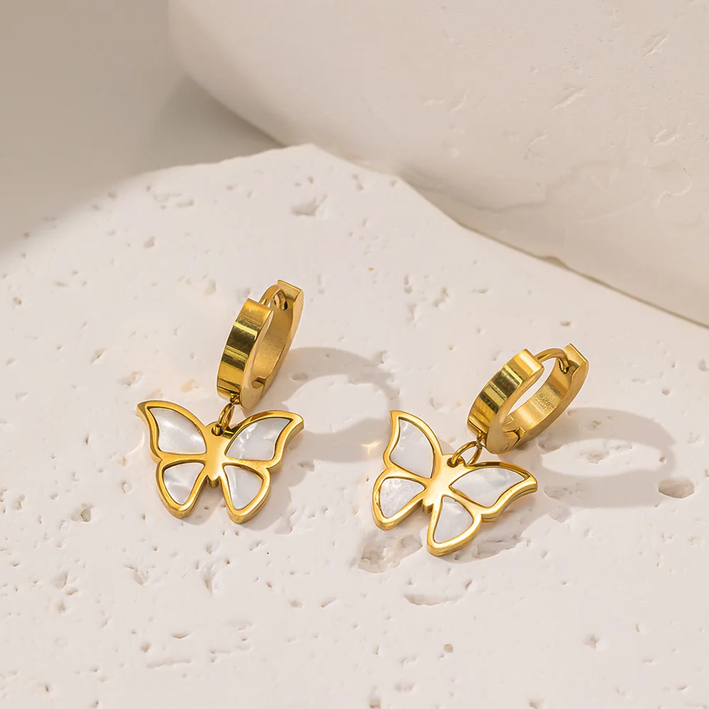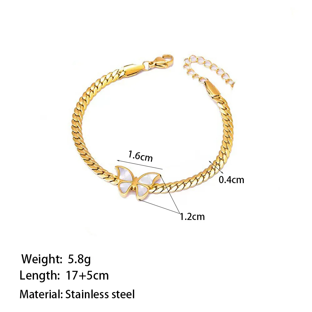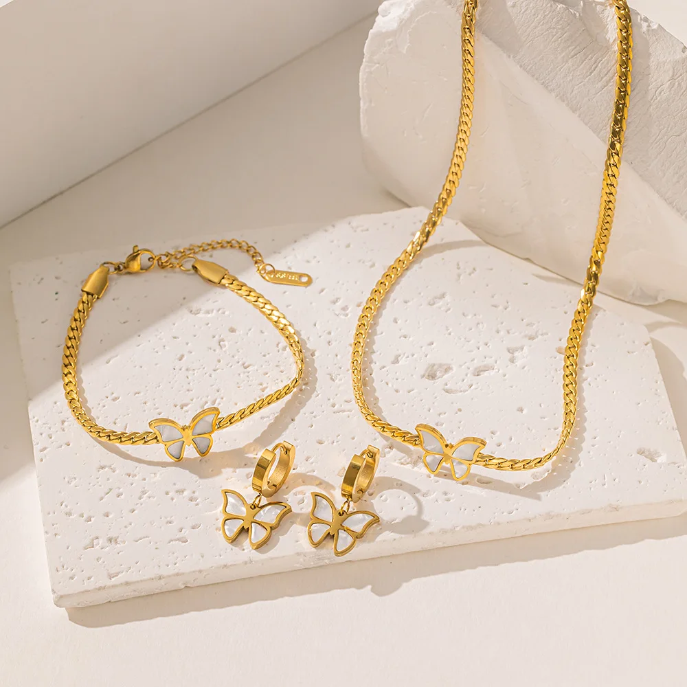 2024 Luxury Charm Women New Fashion 18K Gold Plated White Shell Stainless Steel Earrings Bracelet Necklace Butterfly Jewelry Set