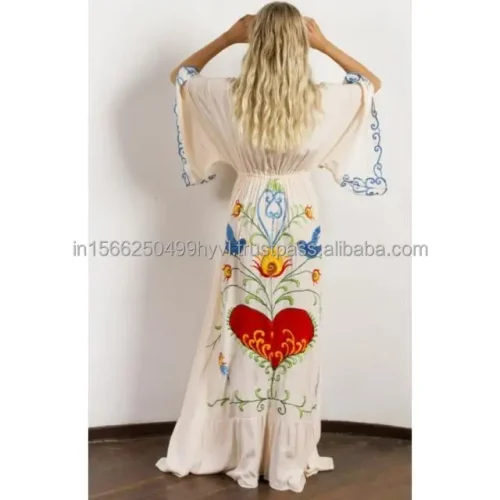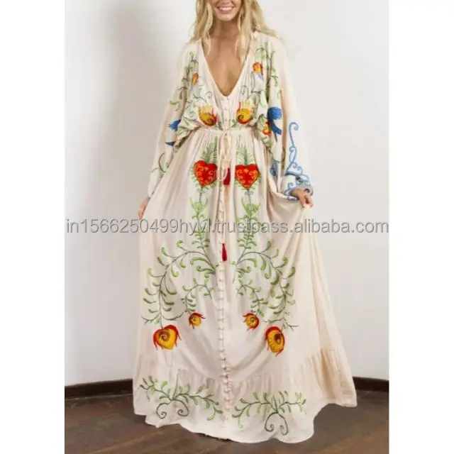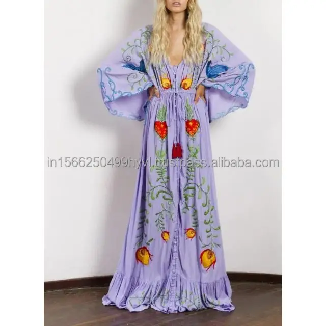 Product Name: 2024 Luxury Long Sleeve Embroidered Women Floor Length V-Neck Casual Long Embroidered Kaftan Dresses