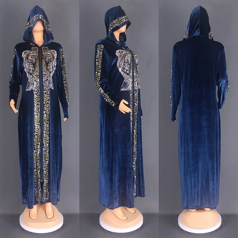 Product Name: 2024 Middle East Muslim Women’s Gown Arab Velvet Cardigan Zipper Robe Scalded Slim Dress for Africa Women