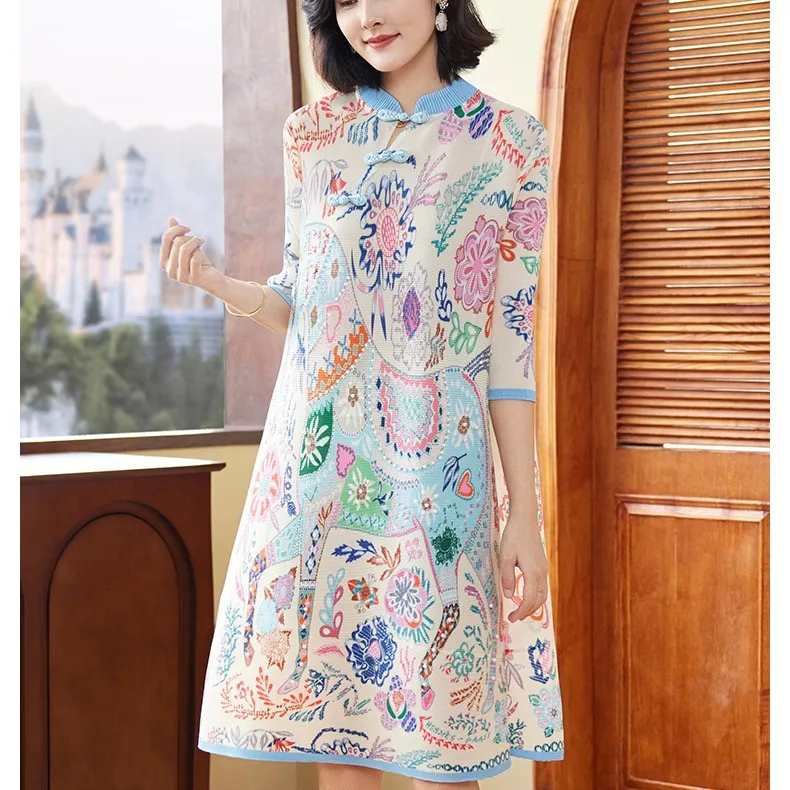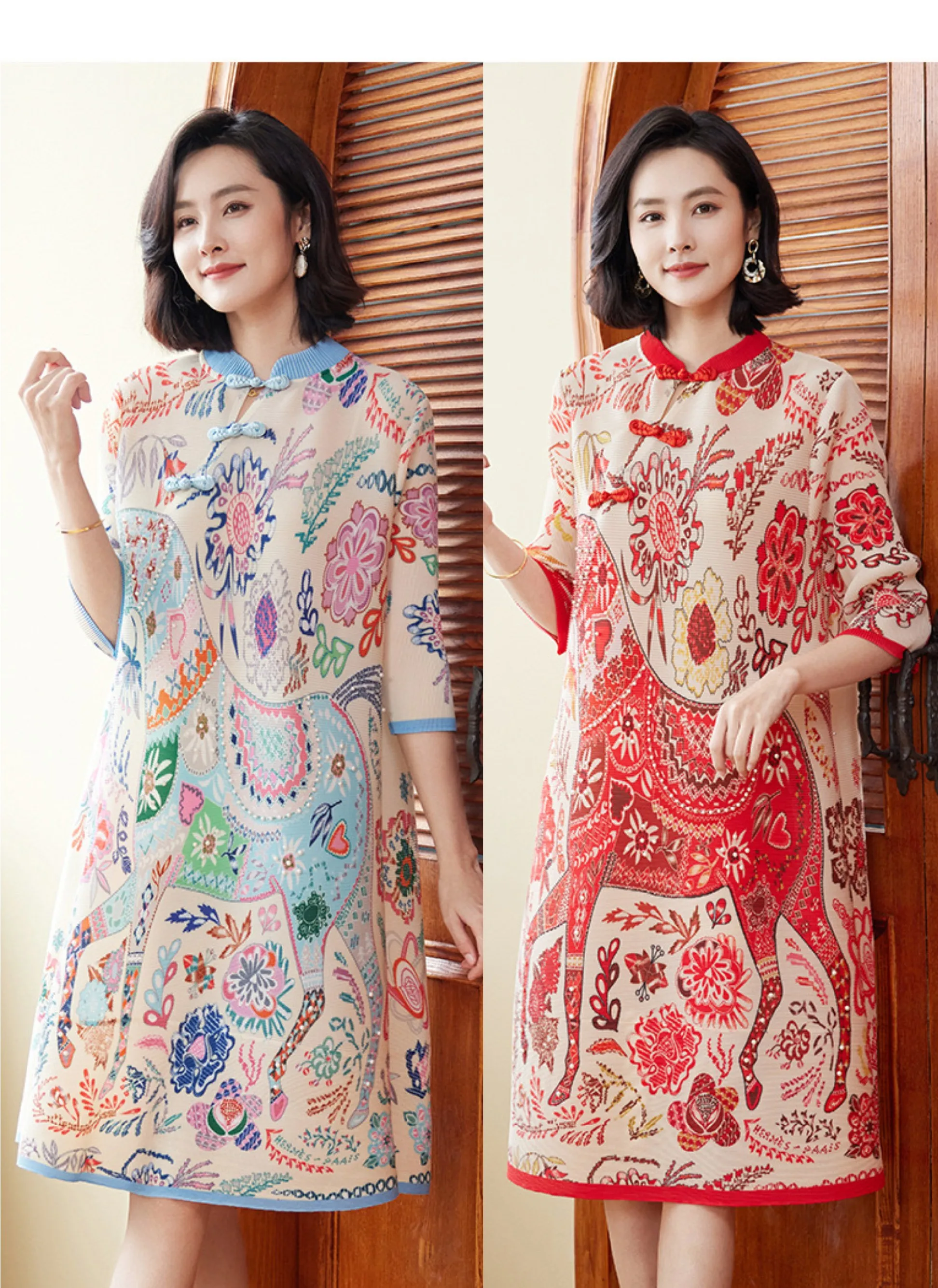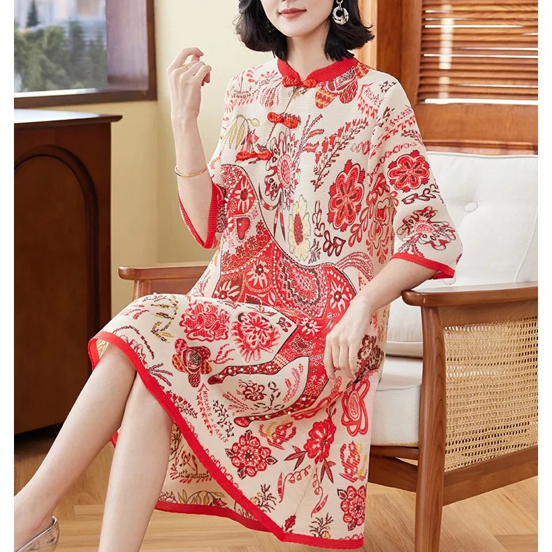 Product Name: 2024 Miyake Retro Long Casual Dresses A-line Solid Color Pleated Irregulor High Grade Sense Long Evening Dress