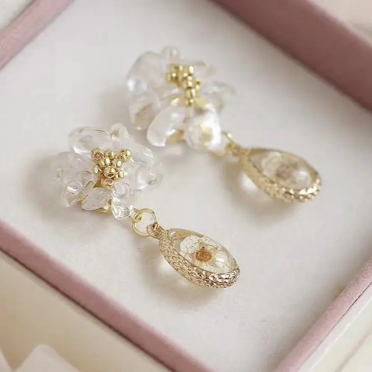Product Name: 2024 New 925 Silver Material High-end Design Transparent Zircon Flower Droplet Shaped Gold Nail