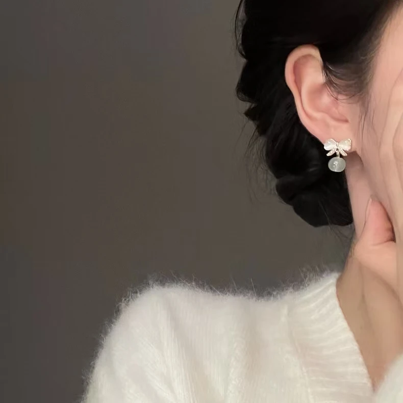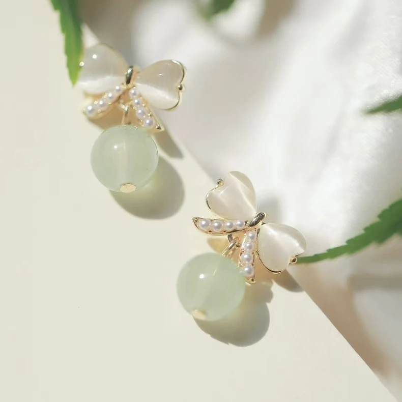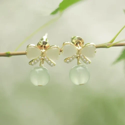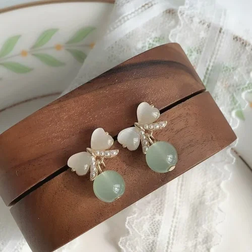Product Name: 2024 New 925 Silver Material High-end Design White Zircon butterfly Green Round Earrings