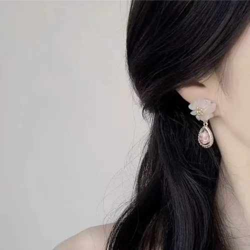 Product Name: 2024 New 925 Silver Material High-end Design White Zircon Flower Droplet Shaped Earrings