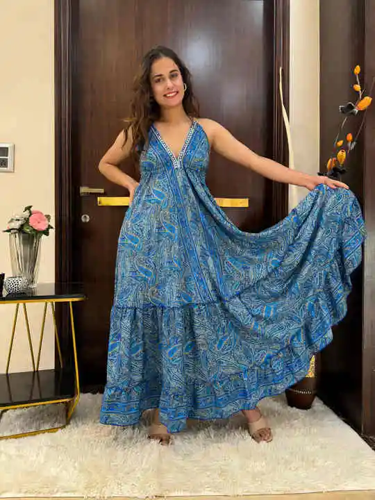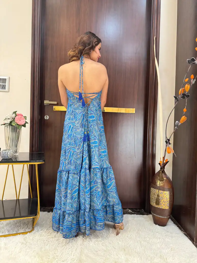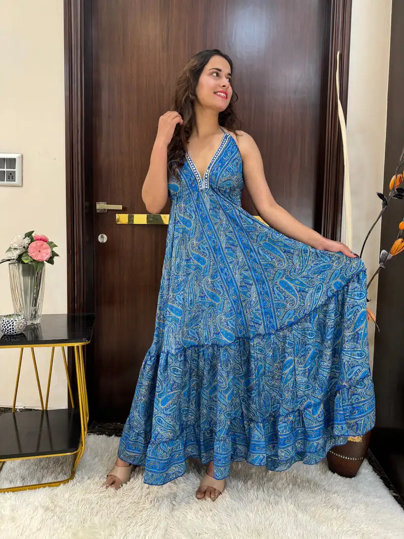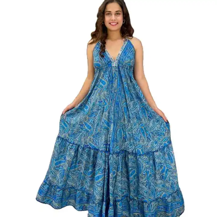 2024 New Arrival High Quality Printed Casual Luxury Silk Bohemian Dress Women Sleeveless Long Floor Length Maxi Dress Cute Beach