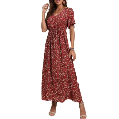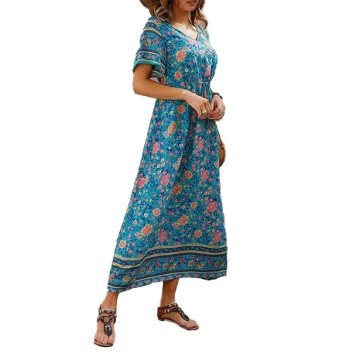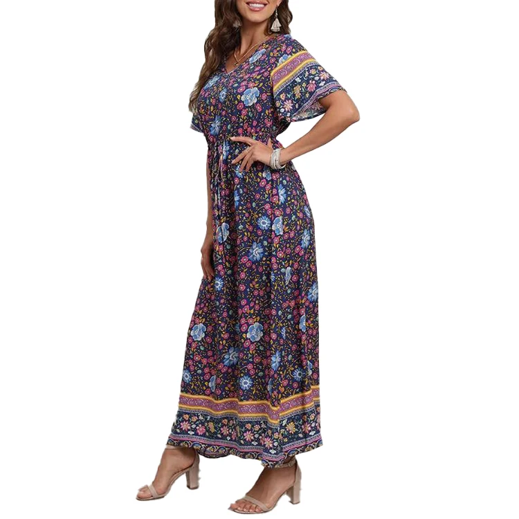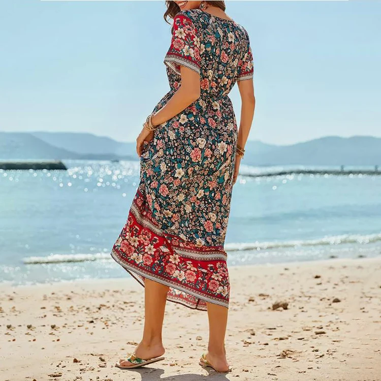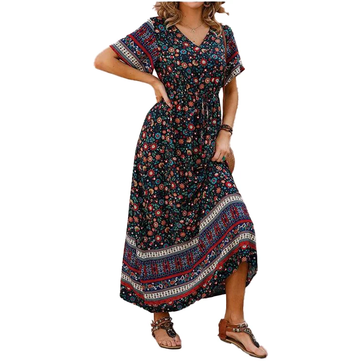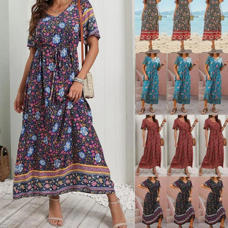 Product Name: 2024 New Arrivals Womens Floral Boho V Neck Maxi Dress Ladies Summer Holiday Beach Long Sundress