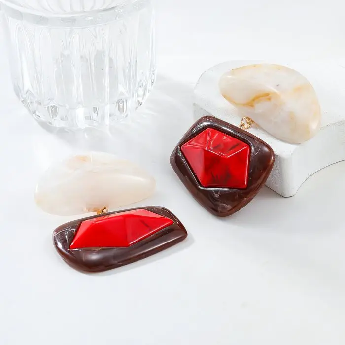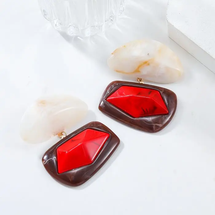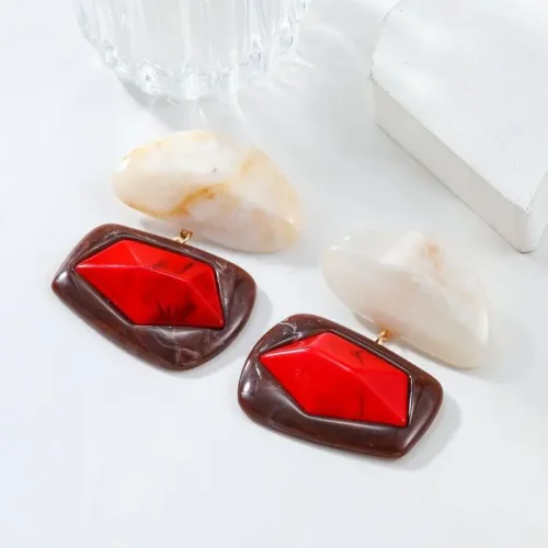 Product Name: 2024 New Design Gold Plated Statement Jewelry Women’s Big Resin Drop Earrings Trendy Geometric Studs for Party
