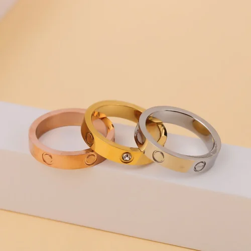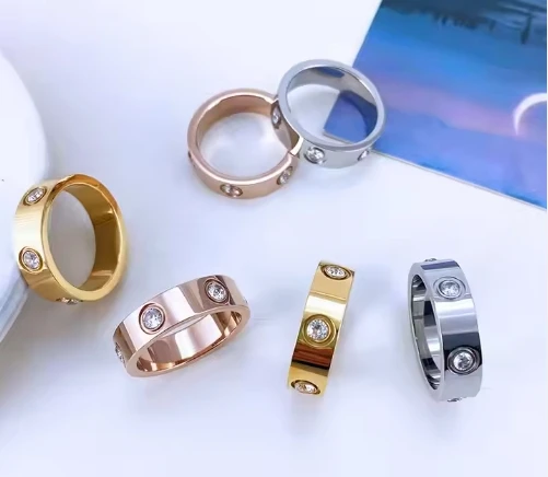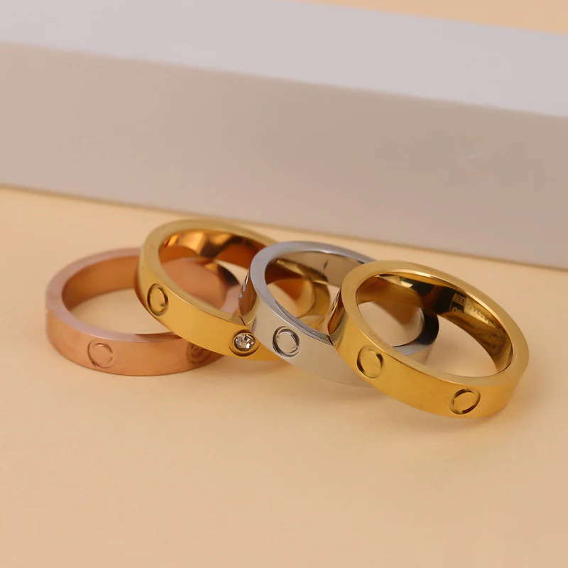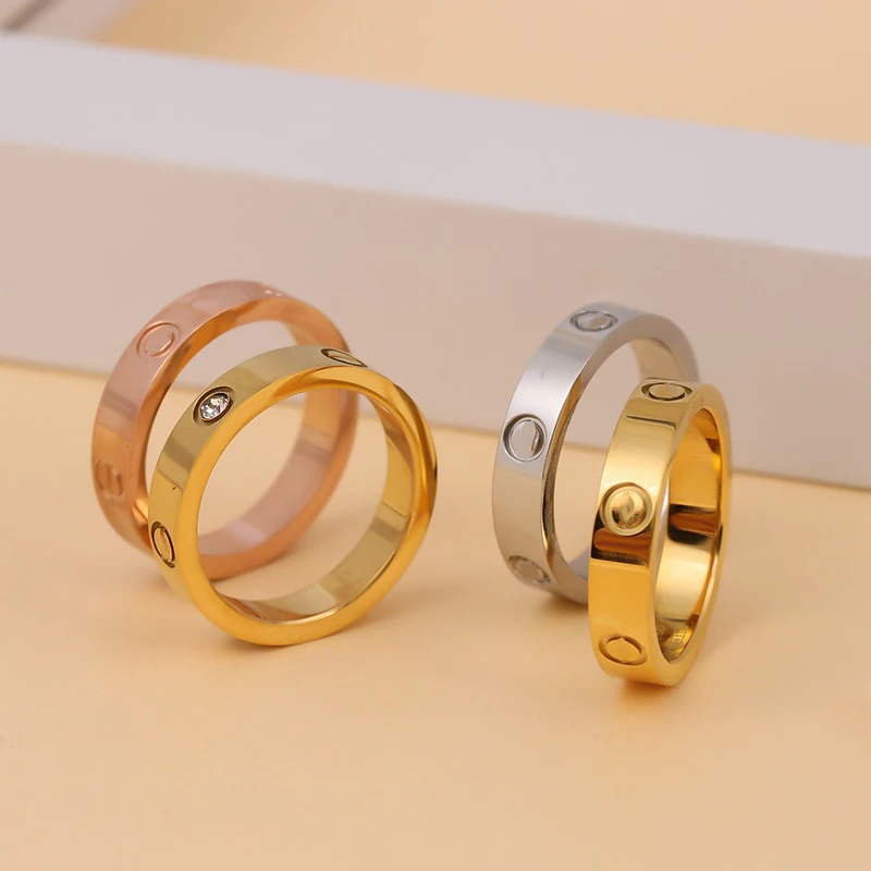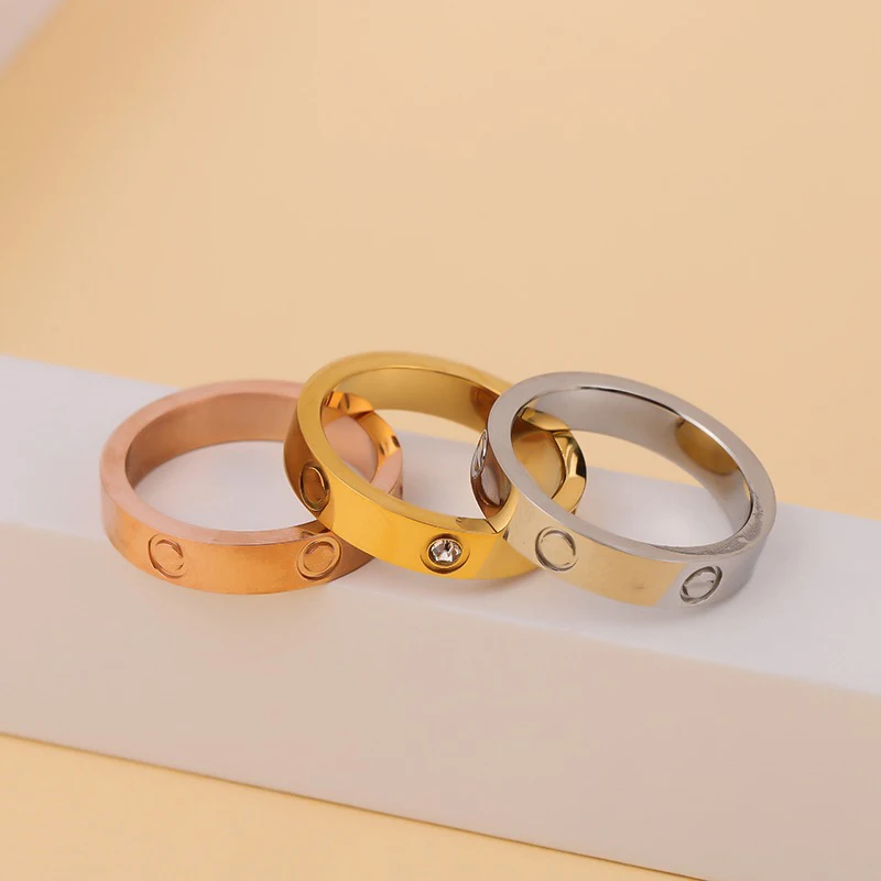2024 New Fashion Simple 18K Gold Wedding Ring Light Luxury Stainless Steel Rings Jewelry for Women Rose Gold Plated
