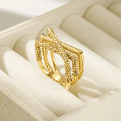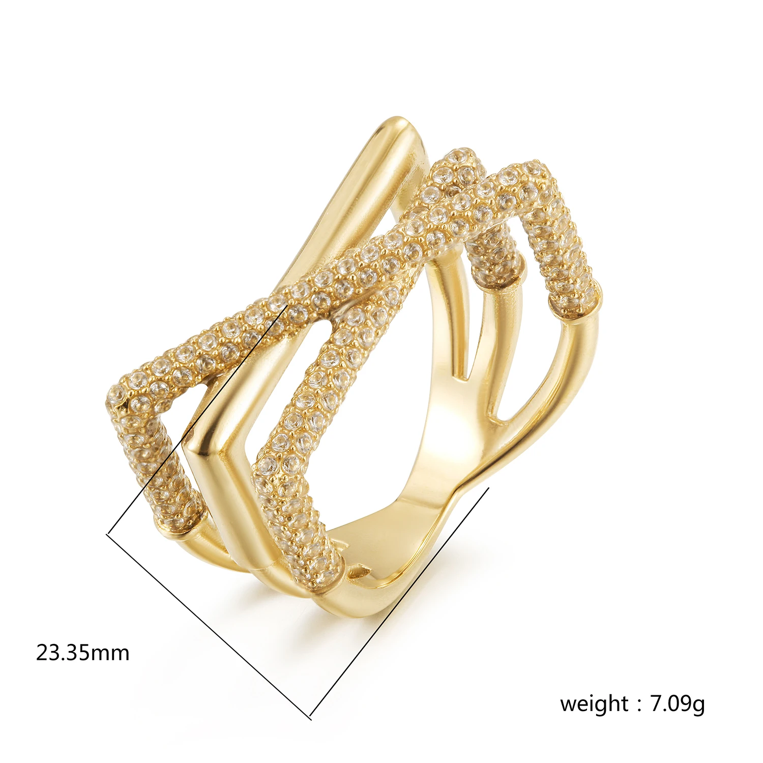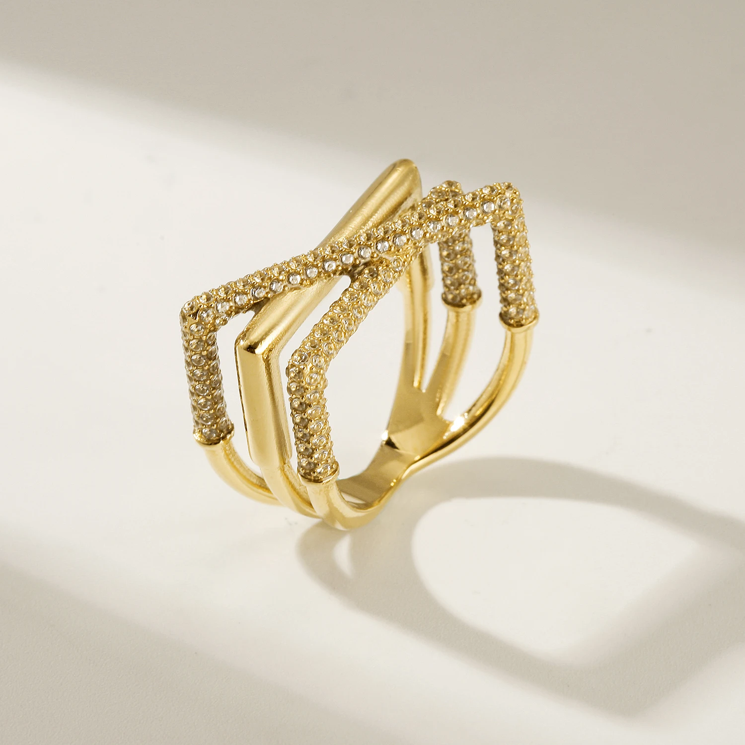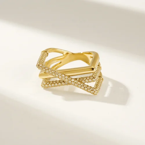 Product Name: 2024 New Ins Trendy 18k Gold Plated Stainless Steel High Quality Triple Layer 5A Zircon Couple Ring for Women