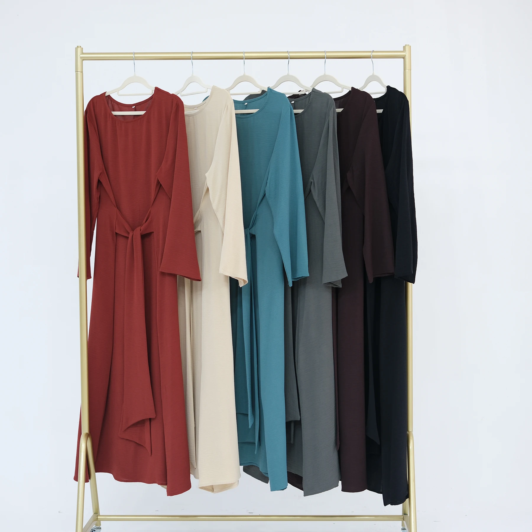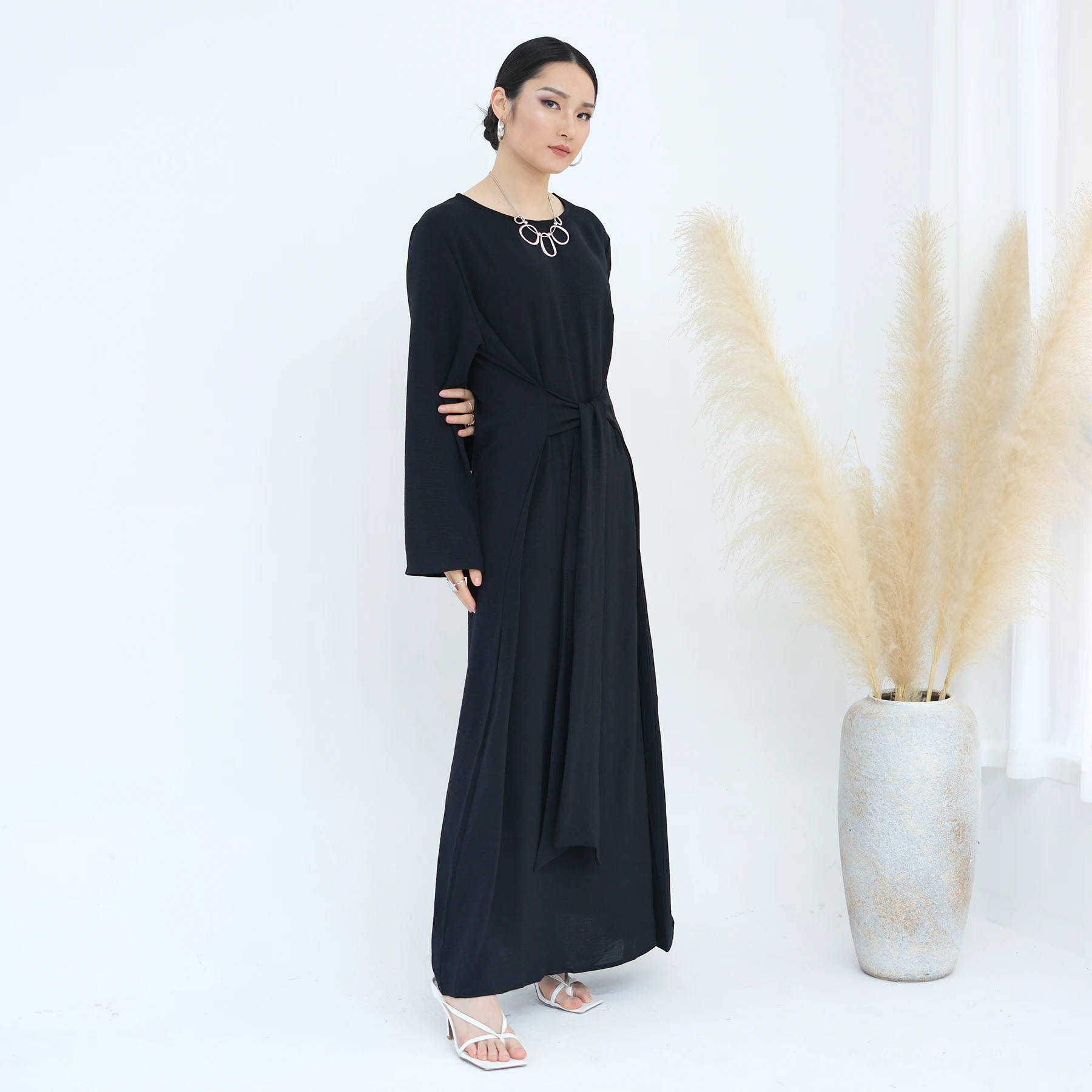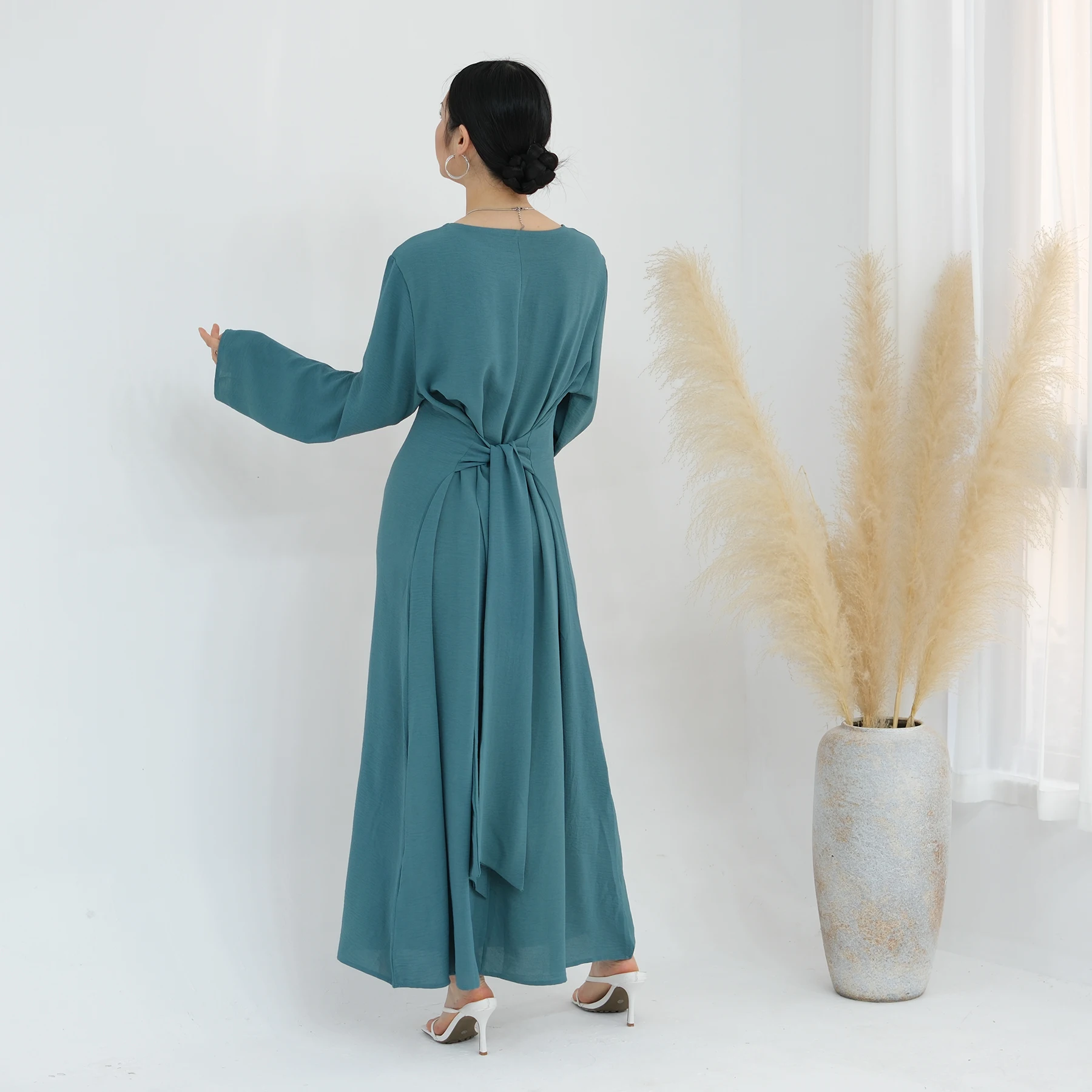 Product Name: 2024 New Modest Abaya Slip Dress Islamic Clothing Women Long Sleeve Wrap Dress Crepe Muslim Women Casual Dresses