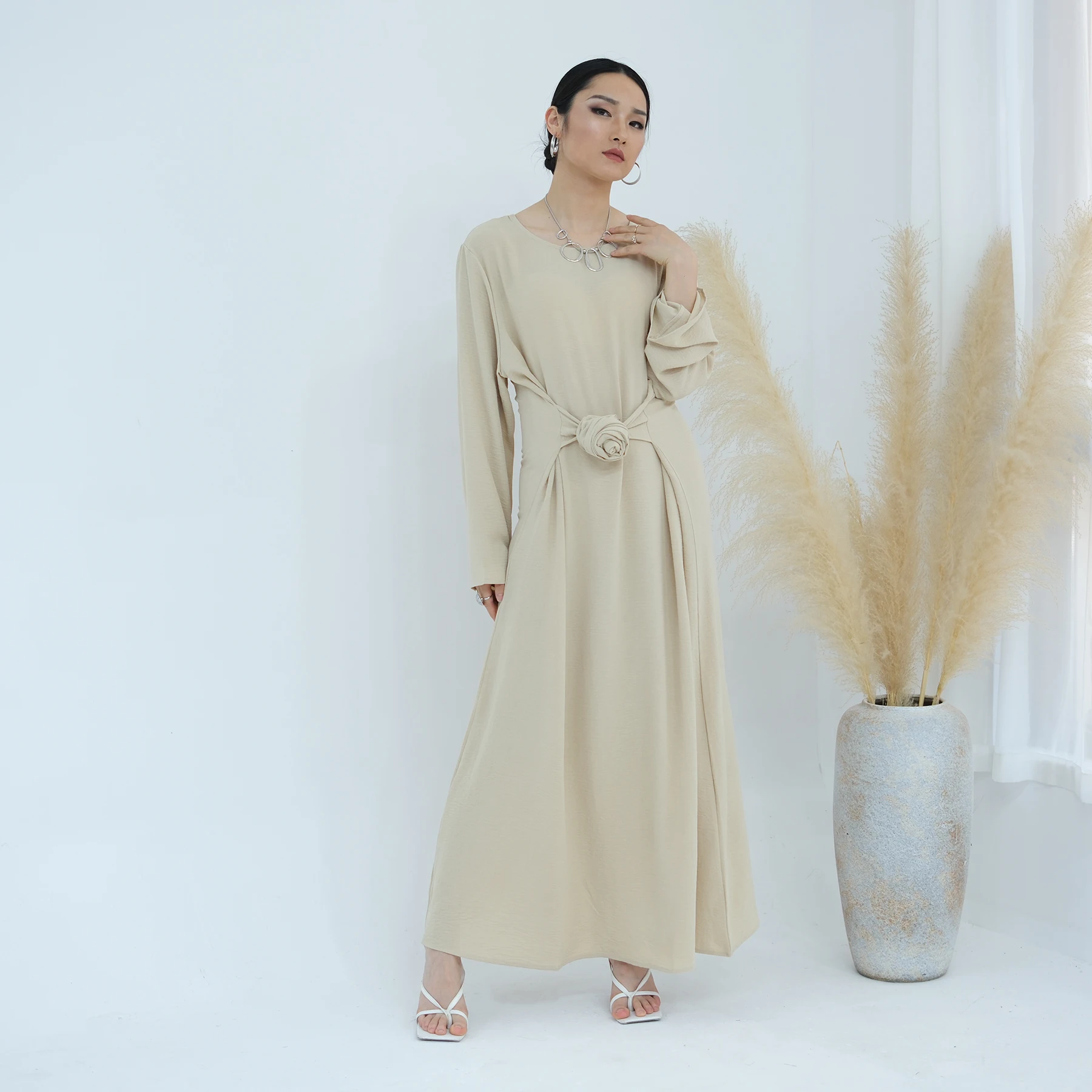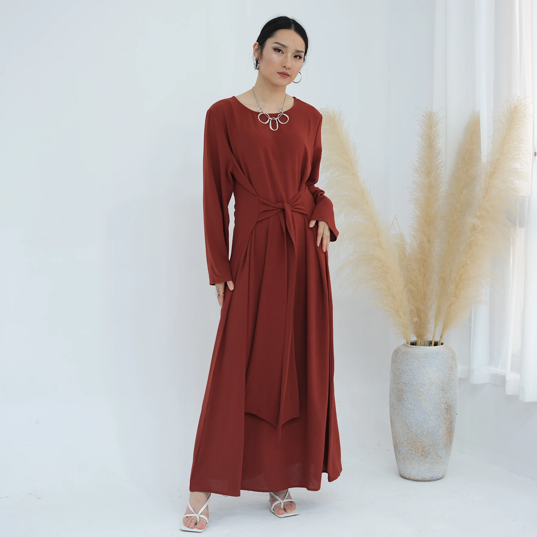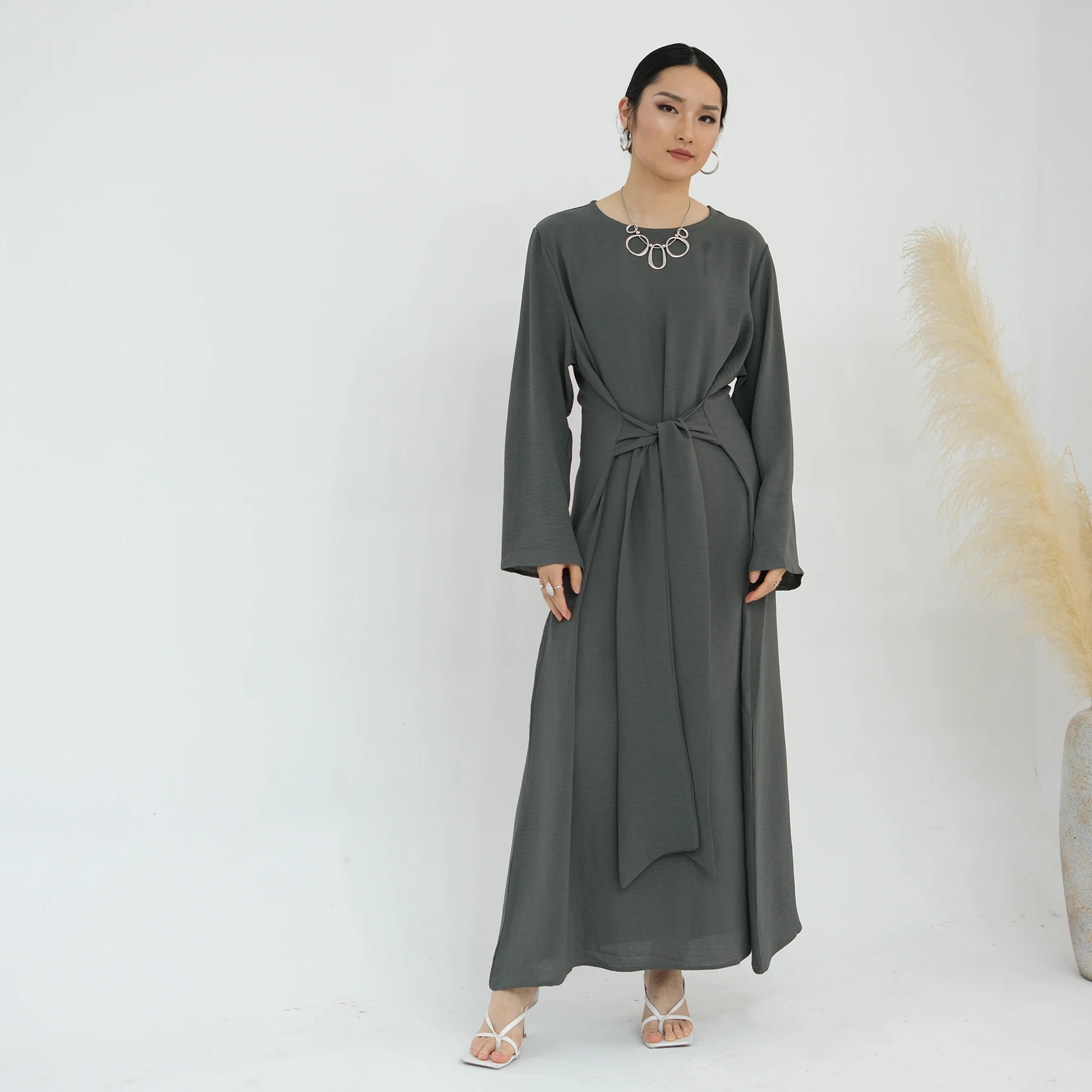 Product Name: 2024 New Modest Abaya Slip Dress Islamic Clothing Women Long Sleeve Wrap Dress Crepe Muslim Women Casual Dresses