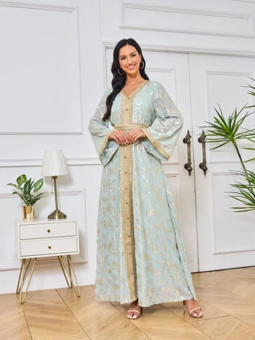 Product Name: 2024 New Pleated Long Sleeved Party Dress With High Waisted Temperament, Women’s Fashionable European and American Dress Dress