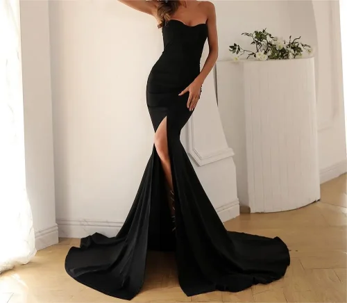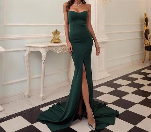 2024 New Sexy Fishtail Woman’s Evening Dress Solid Color Breast Wrap Party Dress