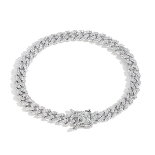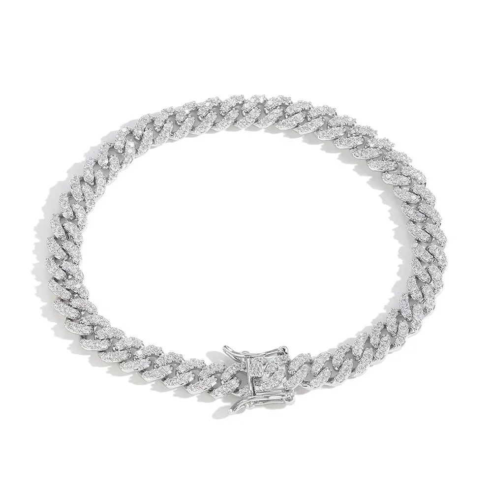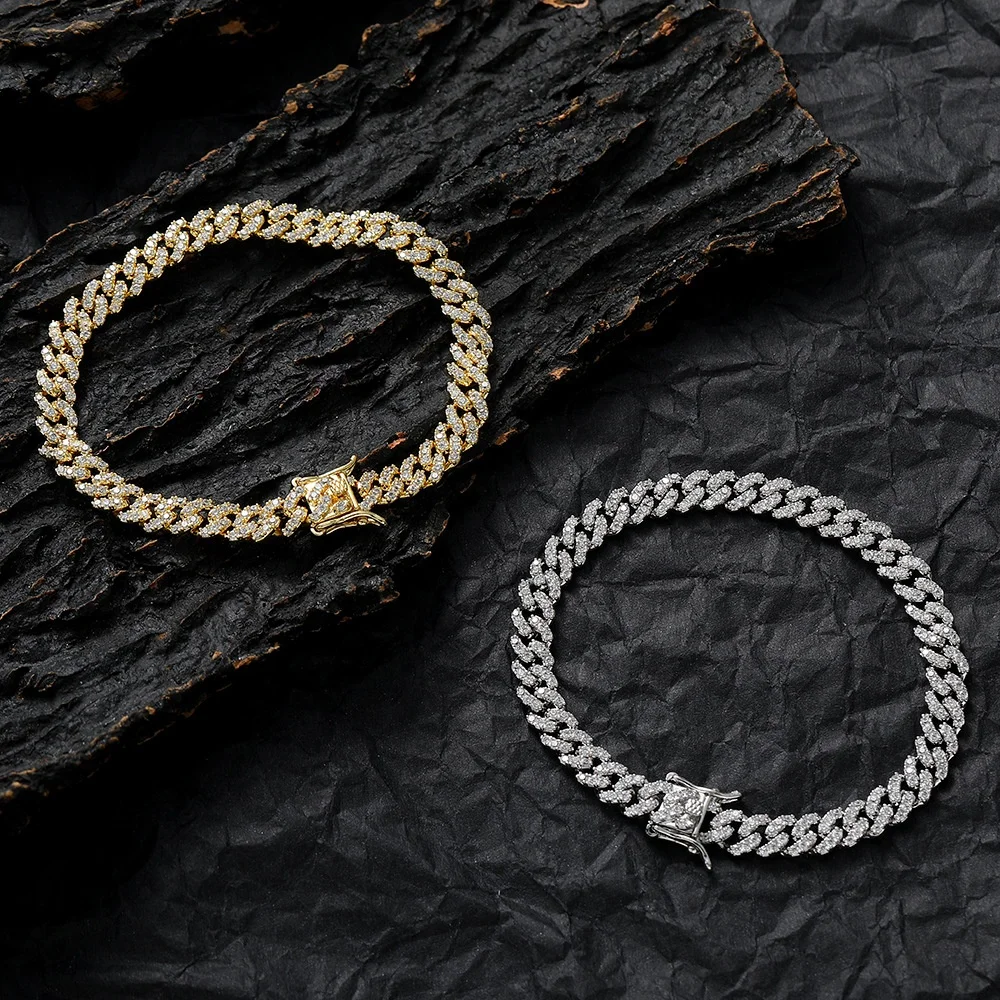 Product Name: 2024 New Style Real Gold Color Hip Hop Brass and One Row Bling Zircon Iced Out 6mm Cuban Chain Bracelet for Women Men