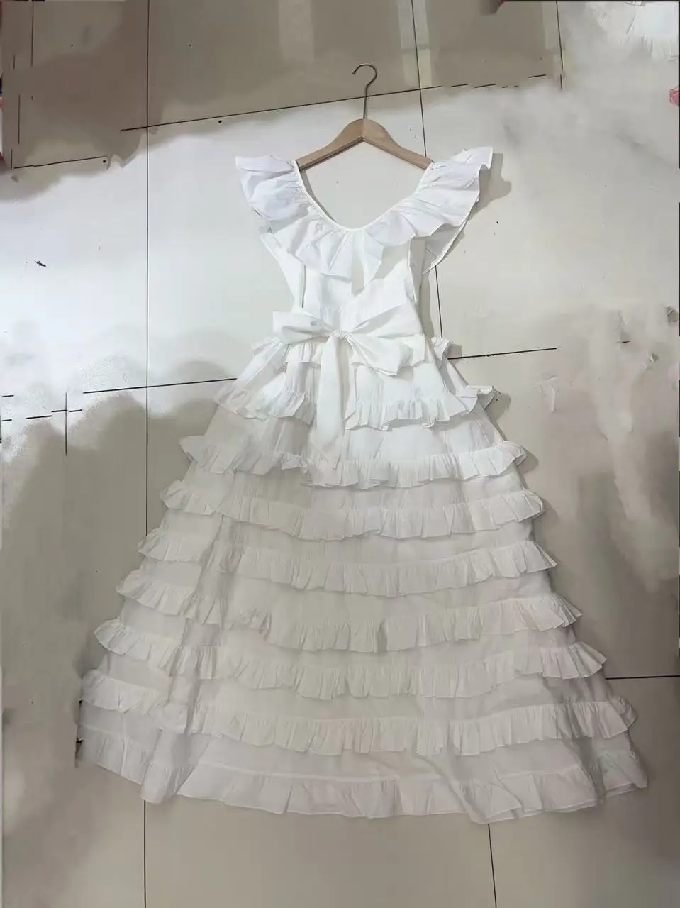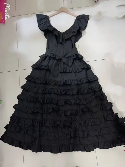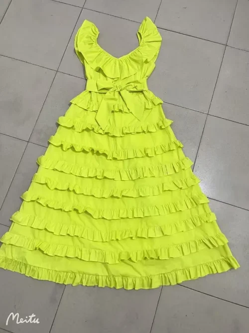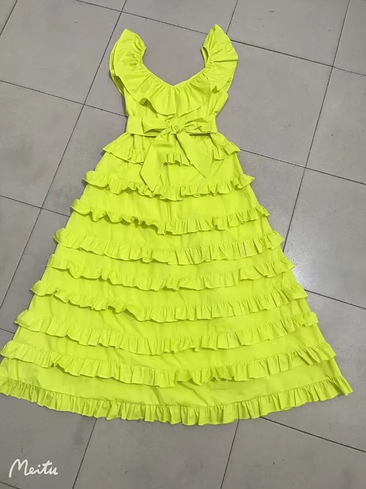 Product Name: 2024 Spring and Summer New Women’s Casual Belt Dress V-Neck Sling Ruffled Layer Australian Holiday Midi for Parties