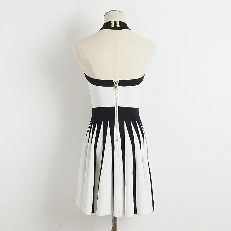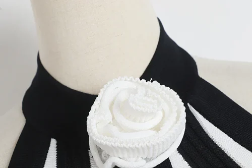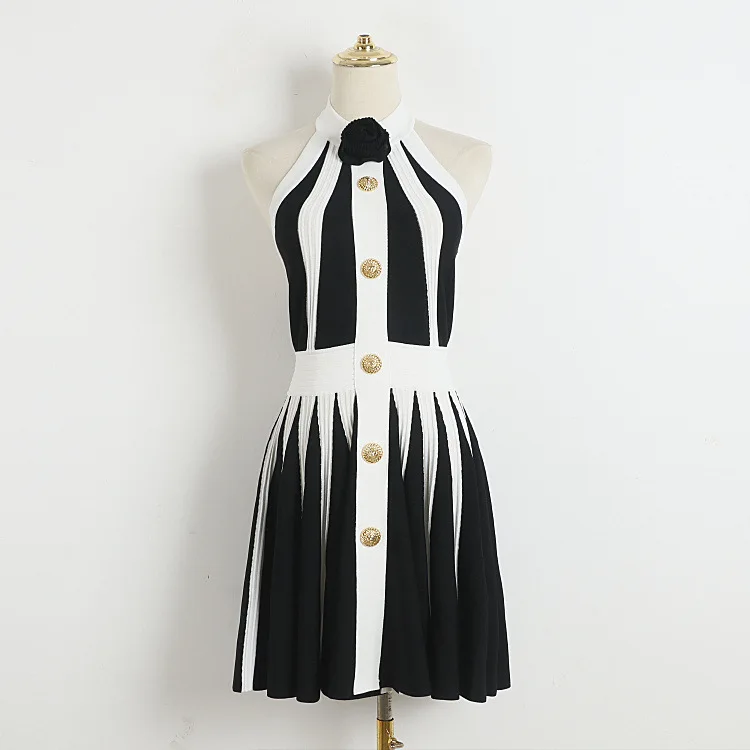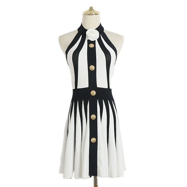 Product Name: 2024 Summer New Women Halter Backless Black Rose Flower Waist Slimming A-line Sleeveless Knitted Dress Ladies Knitted Dress