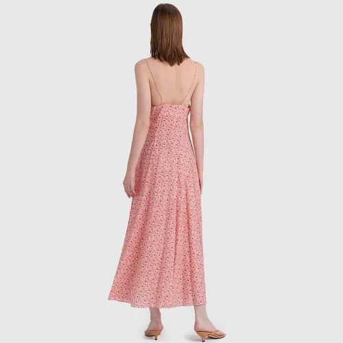 Product Name: 2024 Summer Women High Quality Elegant Lady Boho Slip Pink Pattern Cotton Printed Maxi Dresses