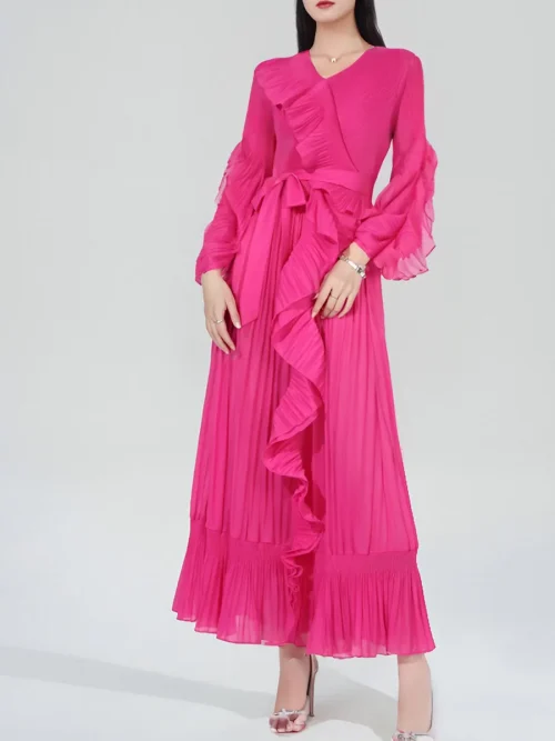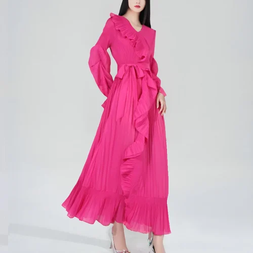 Product Name: 2024 Vintage Style Ladies Maxi Dress High Quality Pleated Ruffled Irregular Layered Ruffle Woven Free Size Casual Party Dress
