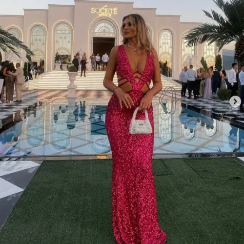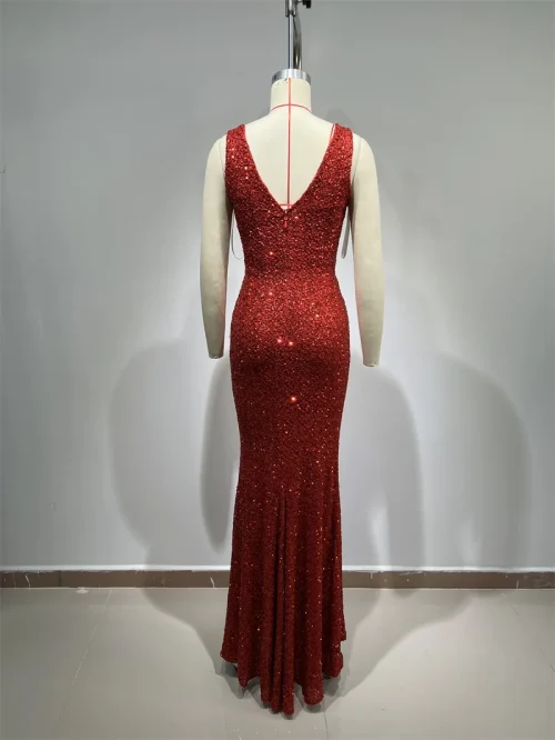 Product Name: 2024 Women’s Fashion Sexy Cut-out Red Sequin Buttock Wrap Dress Socialite Reception Dinner Party Dress
