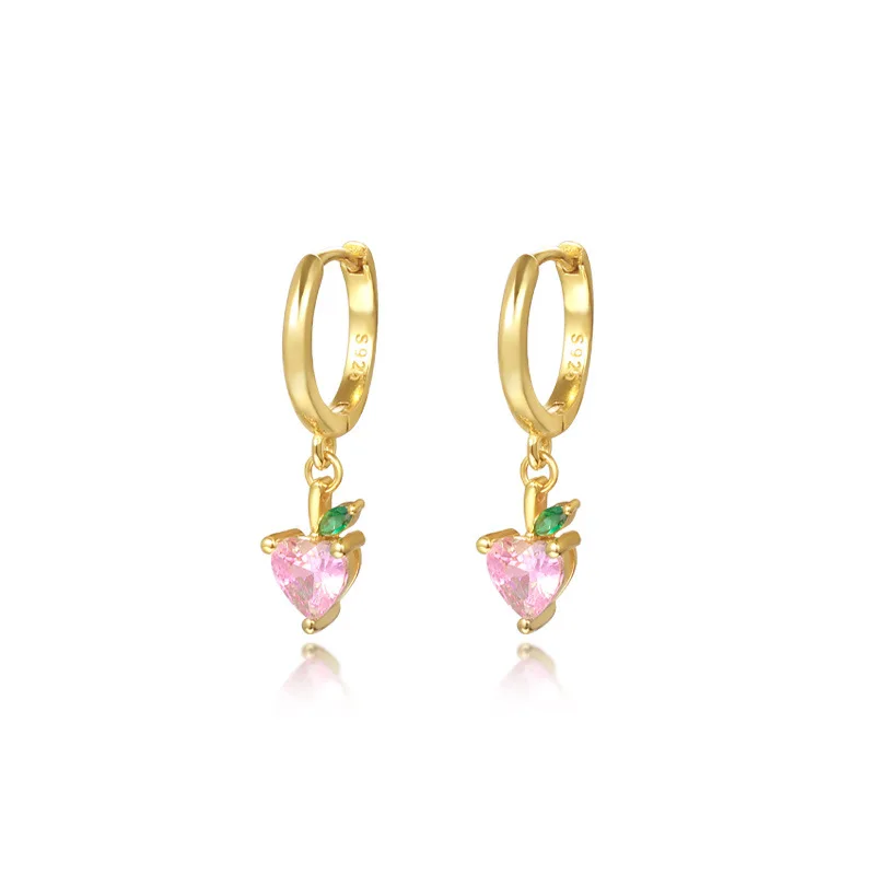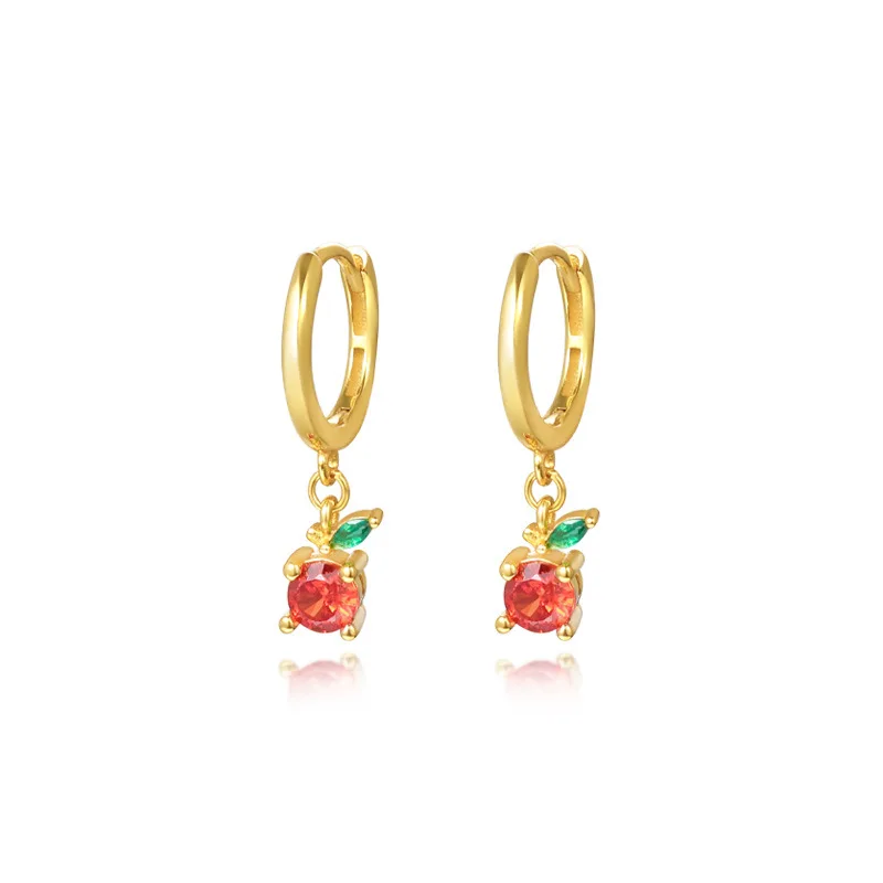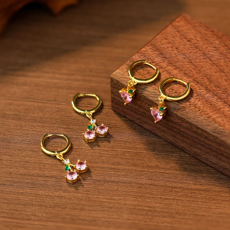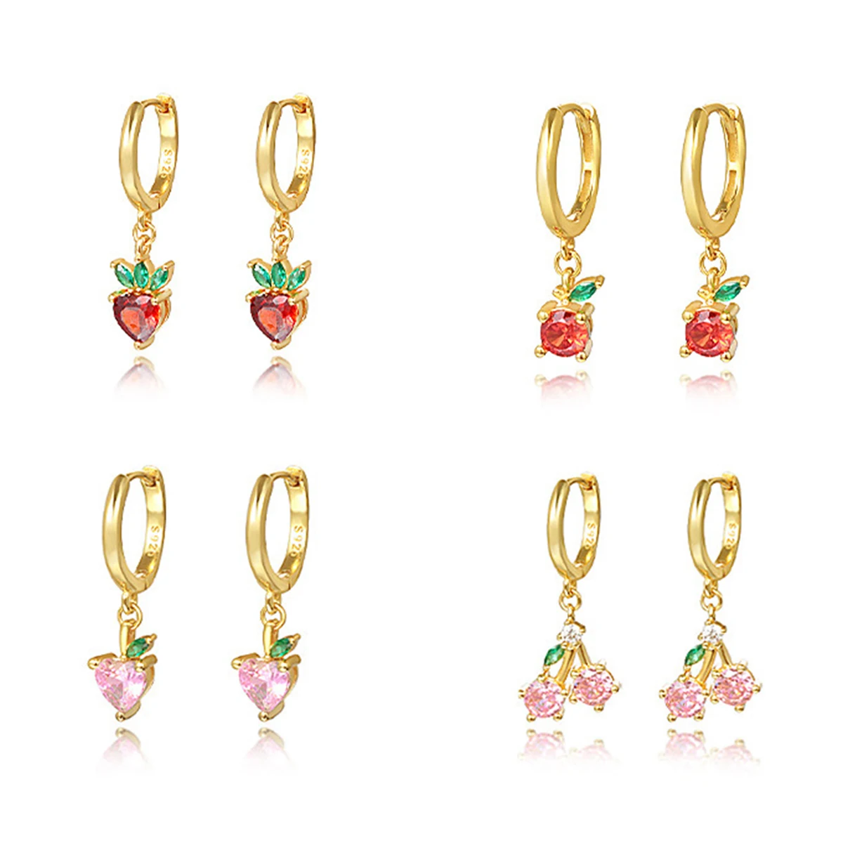 Product Name: 2024 Women’s Trendy 925 Silver Fruit Jewelry Collection Apple Peach Strawberry Cherry Pendant Hoop Earrings Zircon