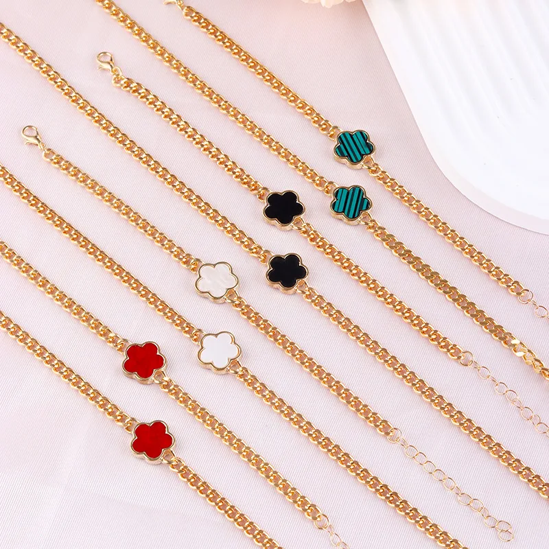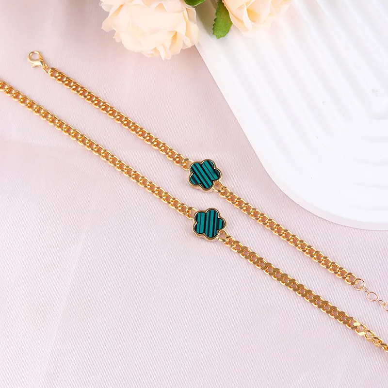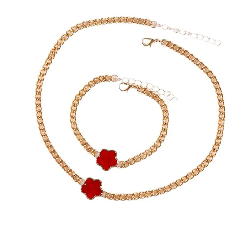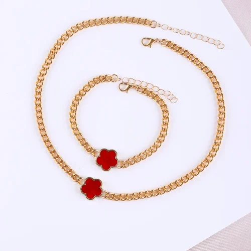 Product Name: 20240902 Flower Women’s French Multicolour Lucky Flower Bracelet Necklace Jewelry Set Gold Plated for Wedding or Gift
