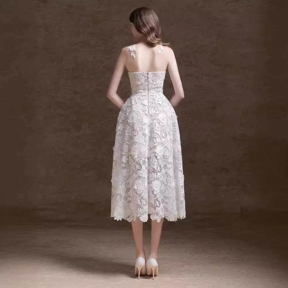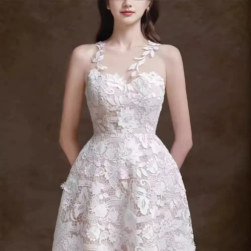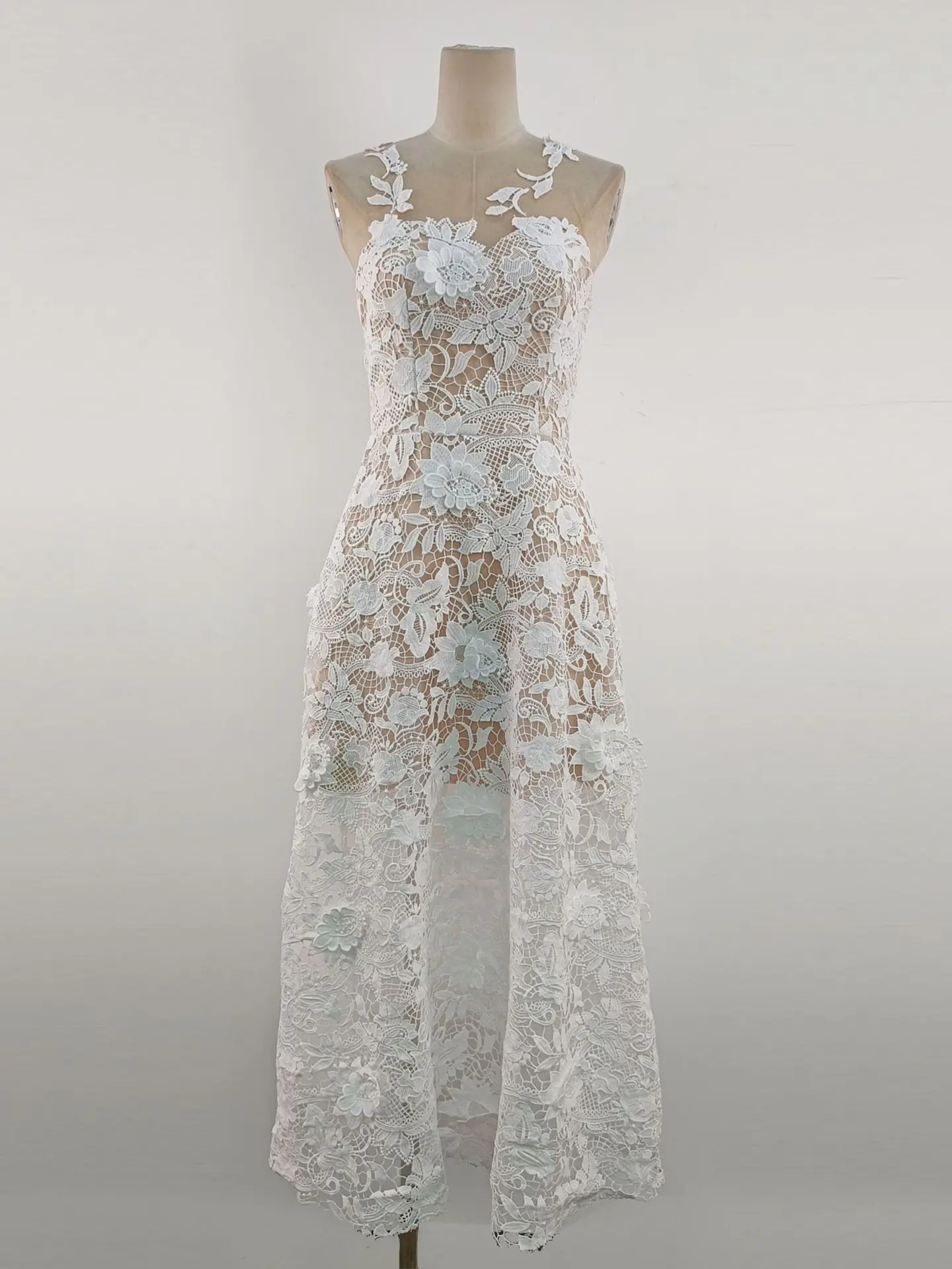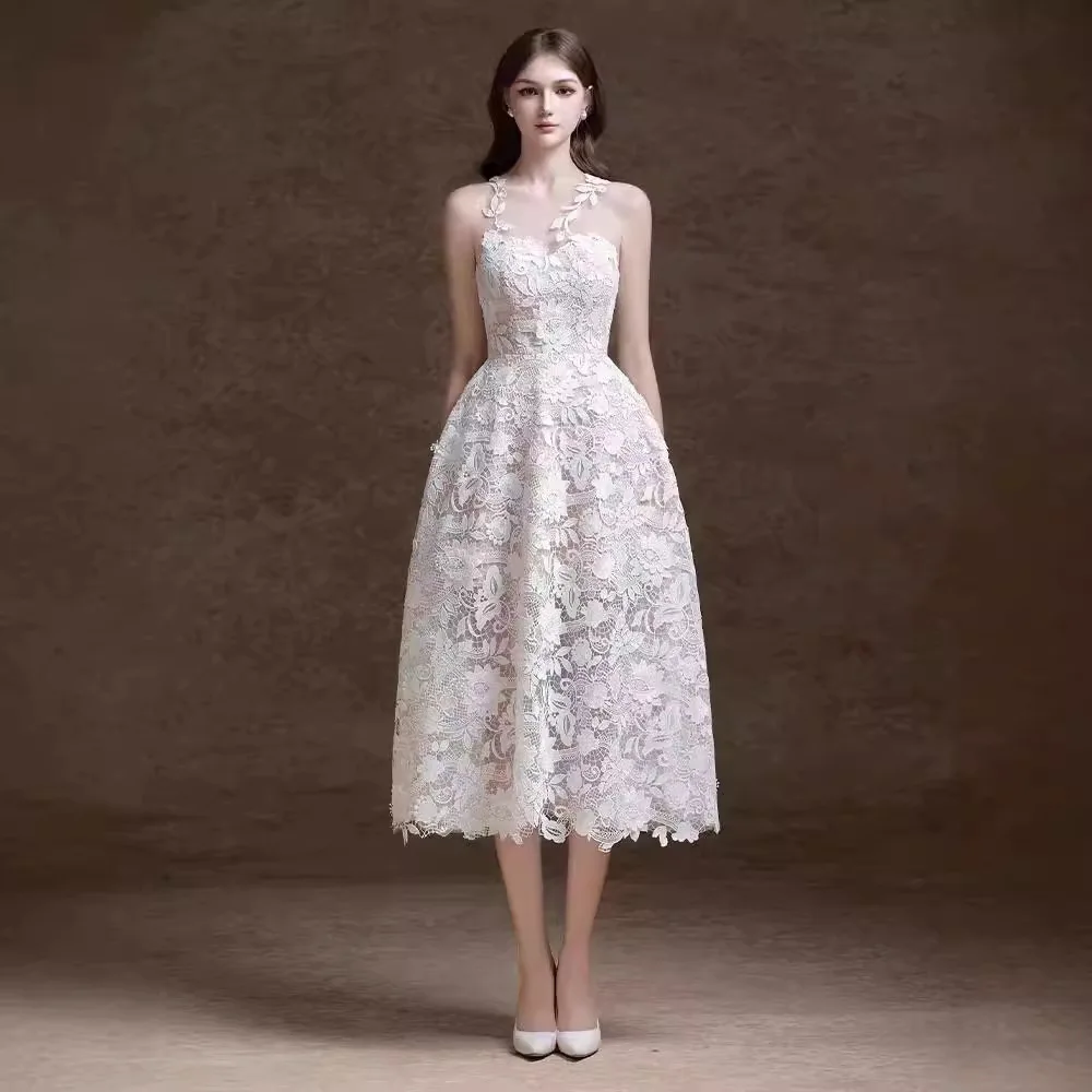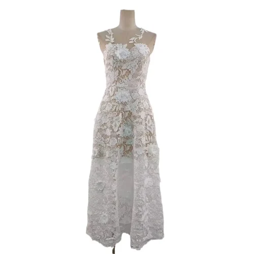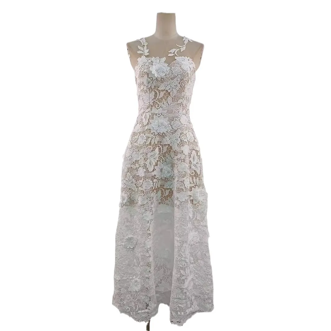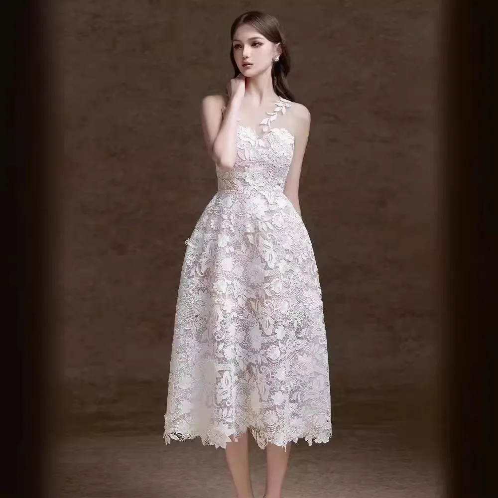 Product Name: 2025 Boutique High Quality Evening Woman Dress Neckline Lace Embroidery Slim A-line White Elegant Party Long Dress