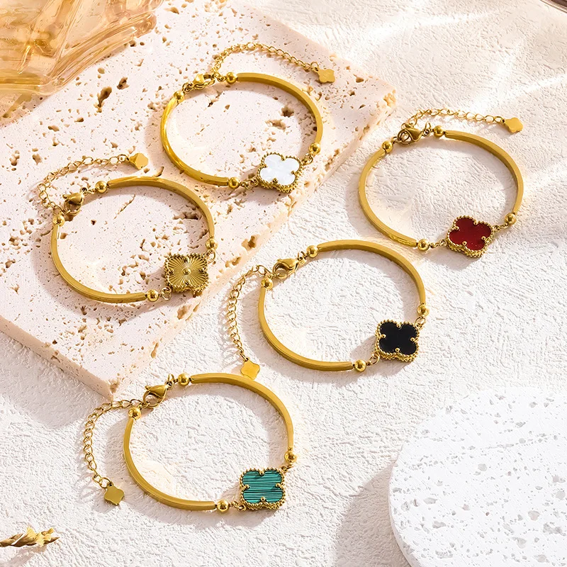 2025 Charm Jewelry Shell Clover Bracelet Stainless Steel Boutique Fashion Jewelry Bracelet 18k Gold Plated