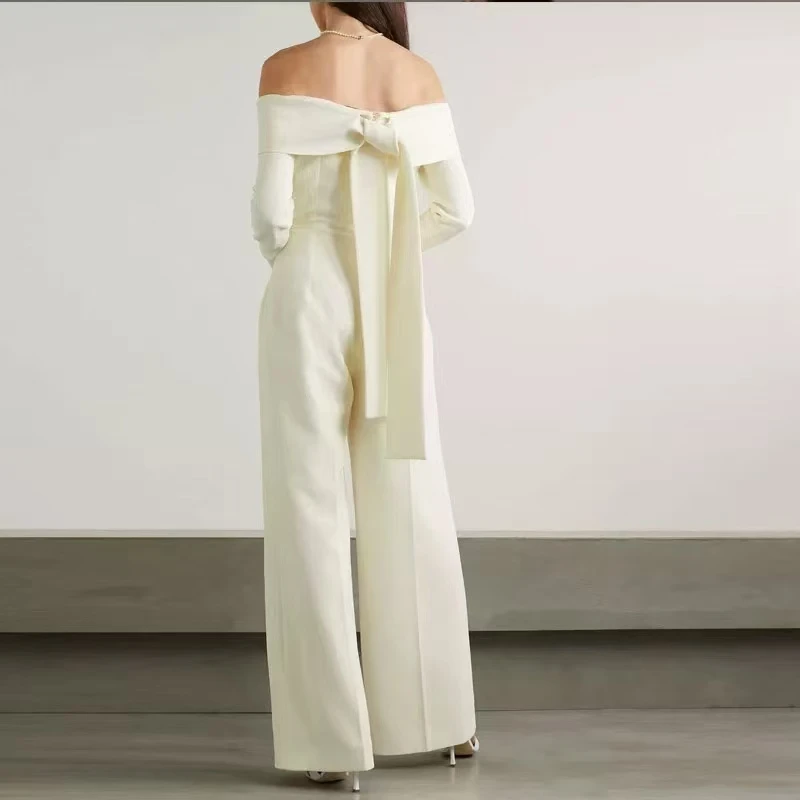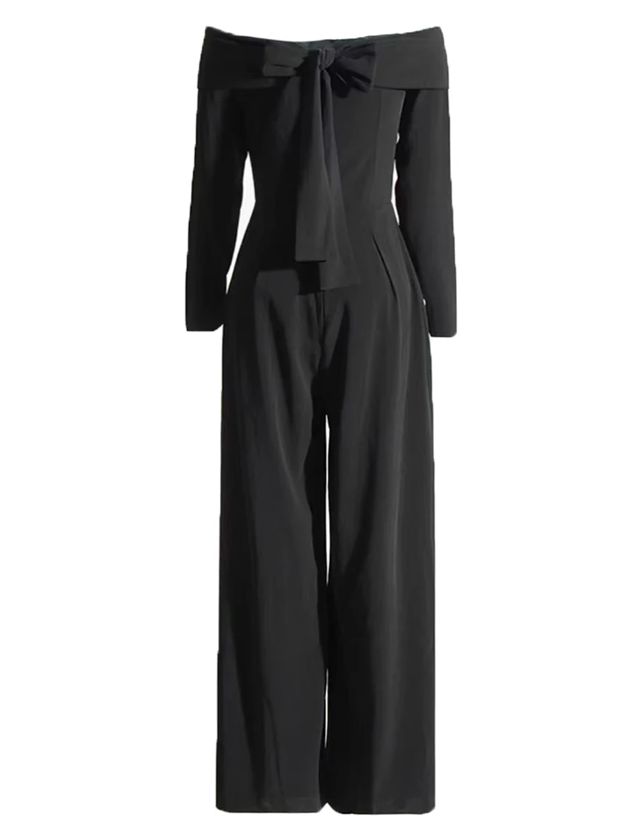 Product Name: 2025 Early Spring New Fashion Design Women Runway High Street Vintage Bow Long Pants Jumpsuit Party Office Lady