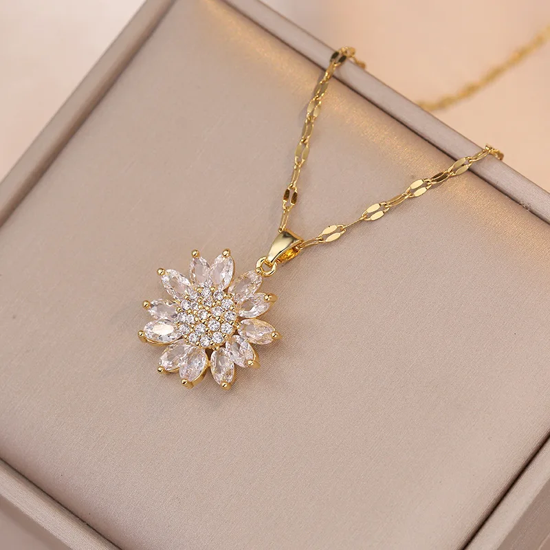 Product Name: 2025 Fashion 18k Gold Plated Titanium Steel Chain Daisy Necklace Earring Sets for Women