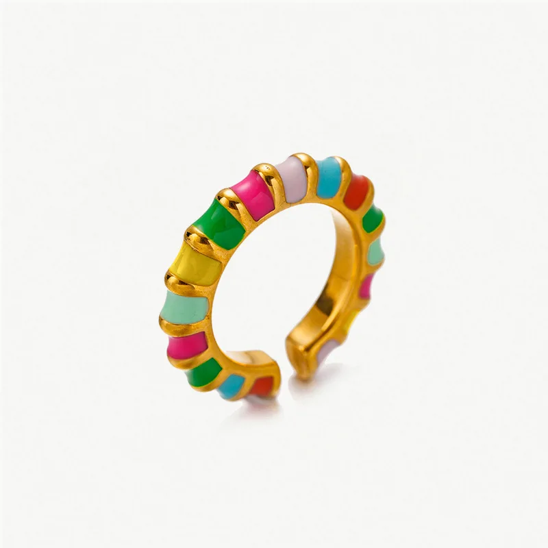 Product Name: 2025 Fashion Colorful Ring Jewelry Women Adjustable Stainless Steel Drip Glazed Enamel Paint Rings