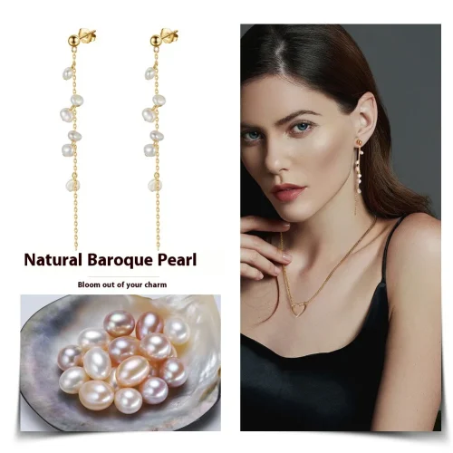 Product Name: 2025 Fashion Fine Women’s S925 Sterling Baroque Beaded Earrings Direct Natural Freshwater Pearl Jewelry