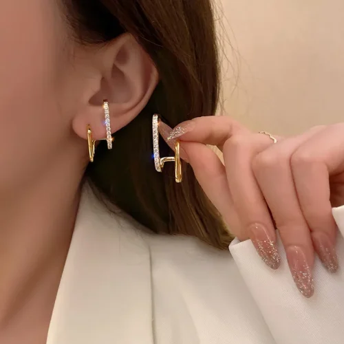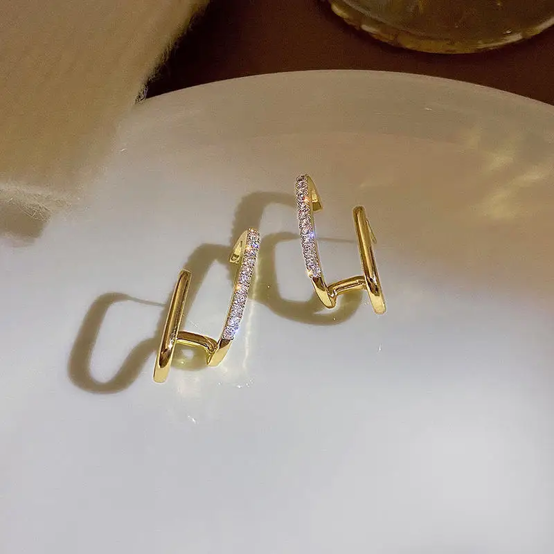 Product Name: 2025 Fashion Jewelry Double Layer Ear Cuff 18K Gold Plated Zircon Clip on Earrings for Women