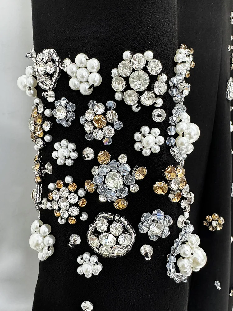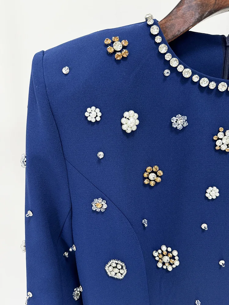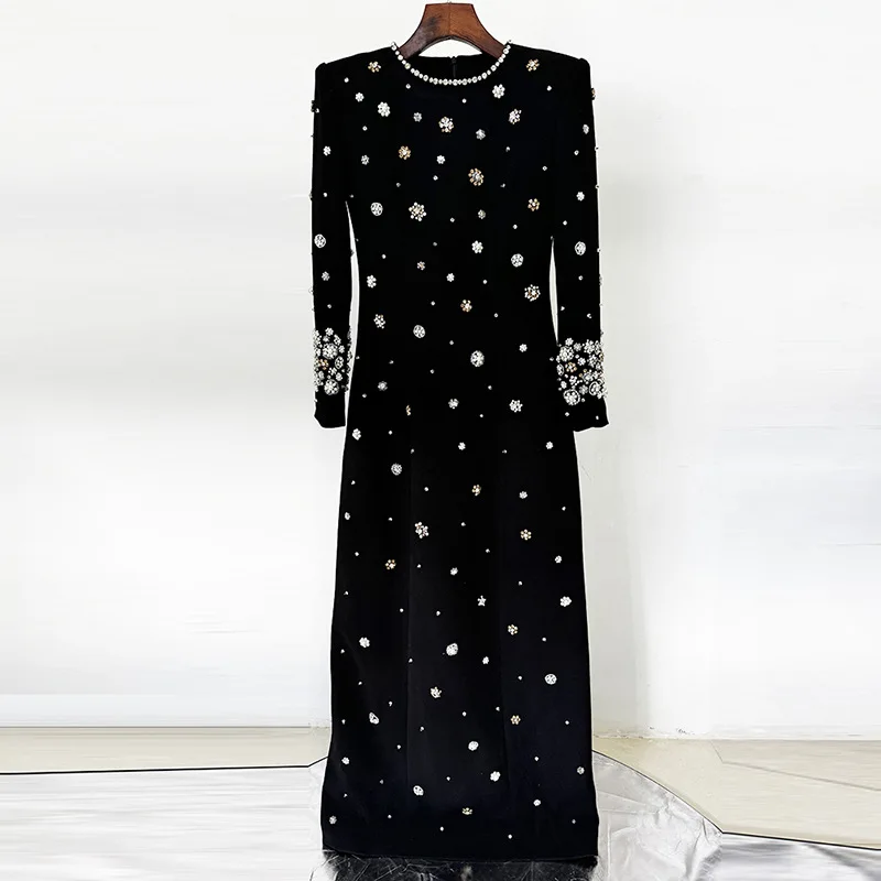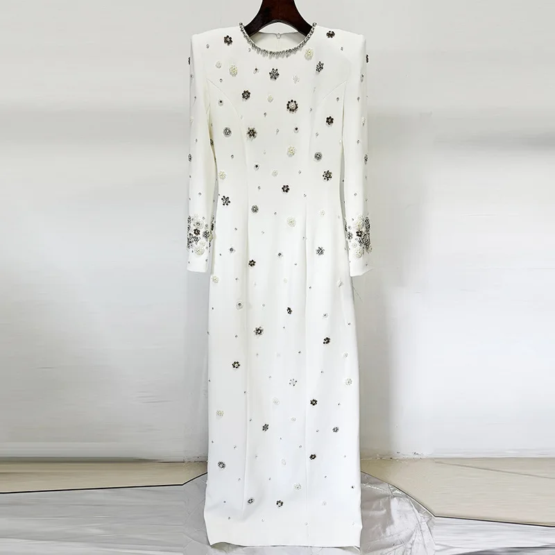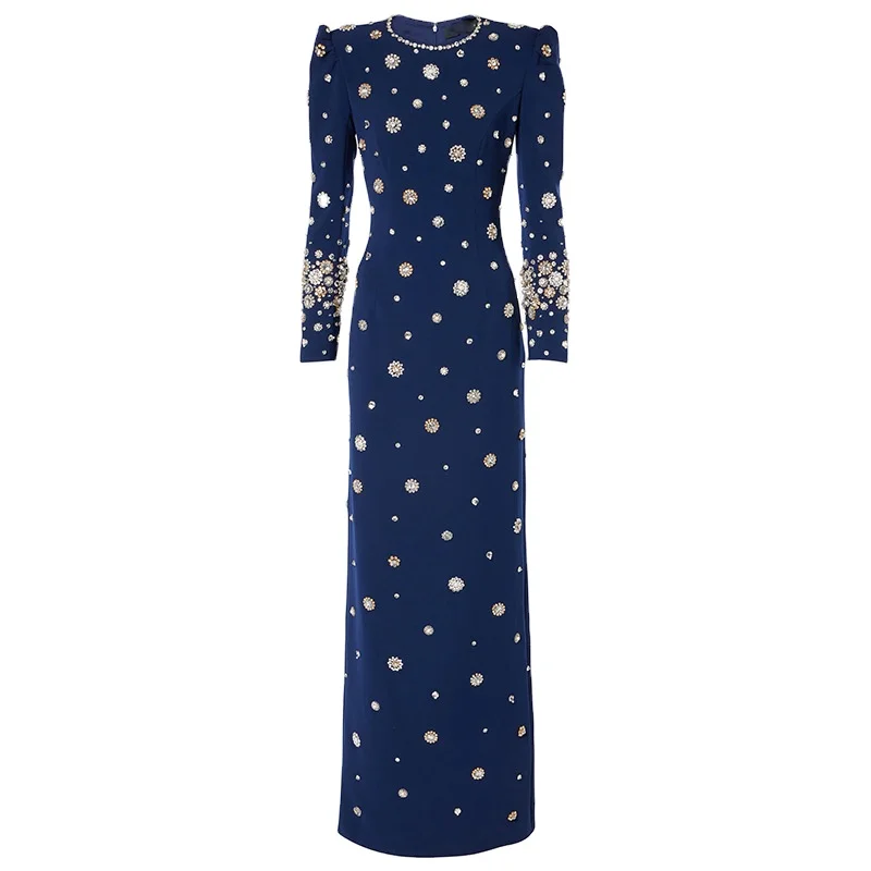 Product Name: 2025 Fashion Modest Style High Quality Workmanship Rhinestone Bead Long Sleeve O-neck Women Formal Wear Lady Maxi Evening Dress