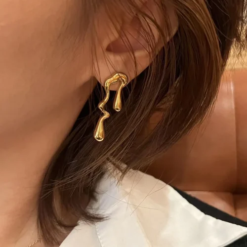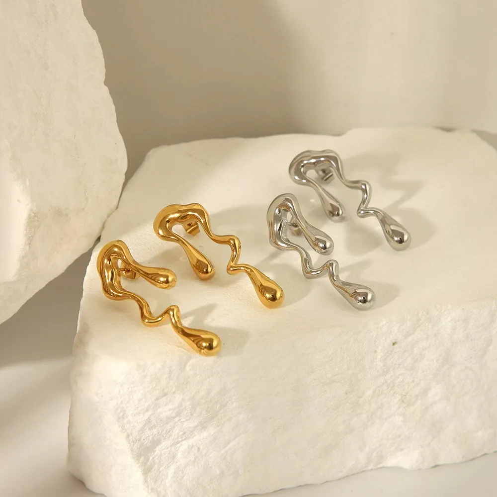 Product Name: 2025 Fashion Waterproof 18K Gold PVD Plated Women Jewelry Stainless Steel Irregular Stud Earring