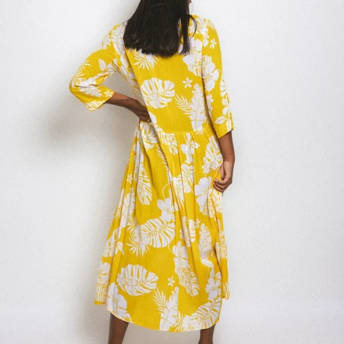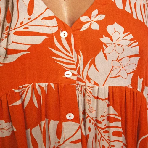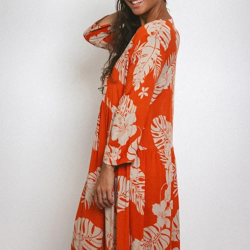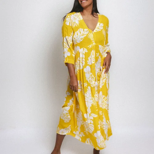 Product Name: 2025 High Quality Deep V Button Women Casual Dress Pre-washed Rayon Hawaiian Maxi Dress