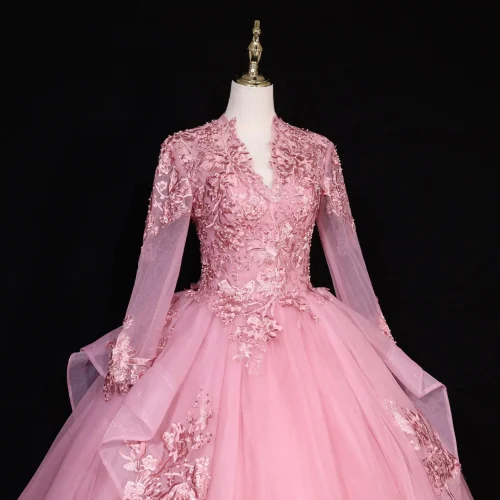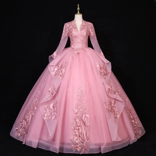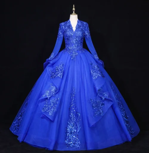 Product Name: 2025 Latest V-Neck Long Sleeve Bridal Gowns Prom Dresses Colorful Lace Evening Dress Wedding Dress