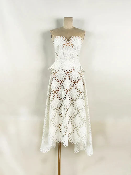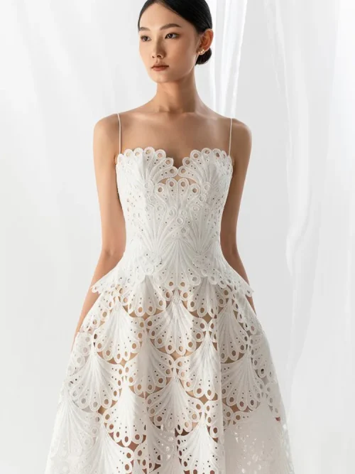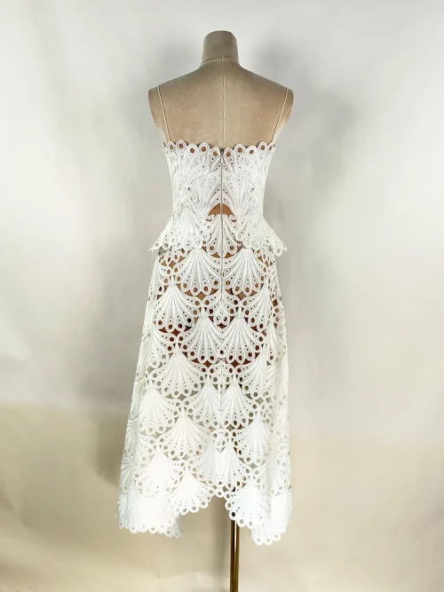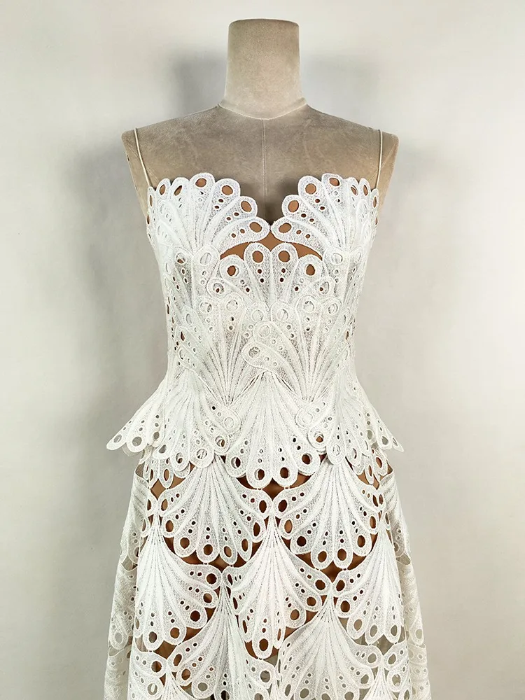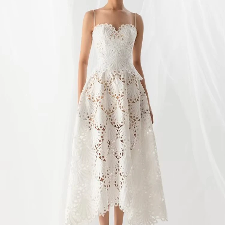 Product Name: 2025 Luxury Women’s Long Dress High Quality Couture White Lace Embroidered with Niche Strap Anti-Static Feature