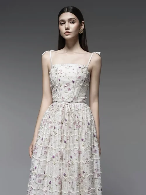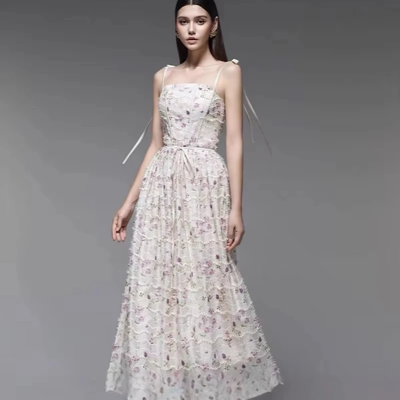 Product Name: 2025 New Design High Quality Elegant Fashion Dress Flower Strap Long Dress Holiday Style Young Women’s Long Dress