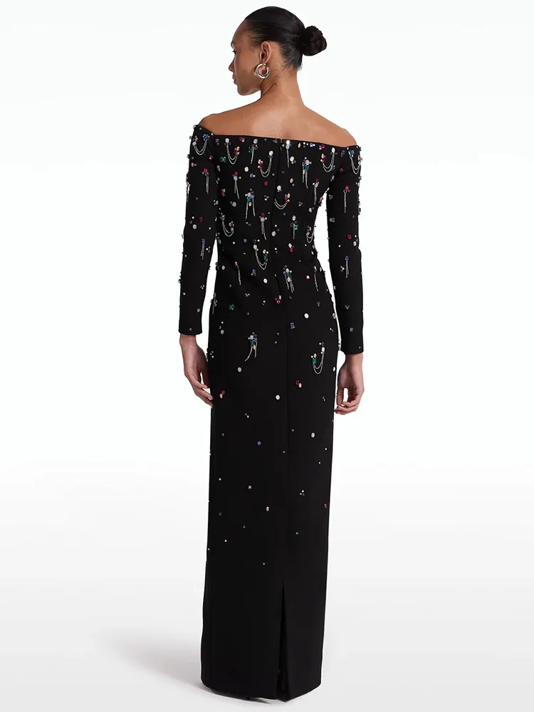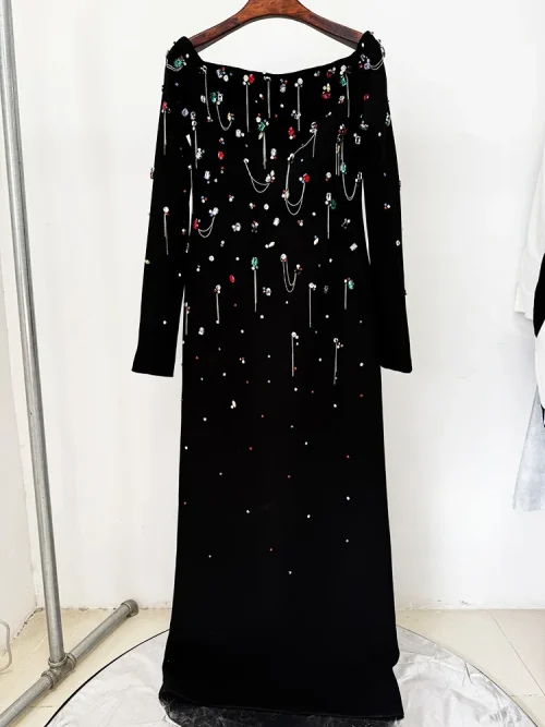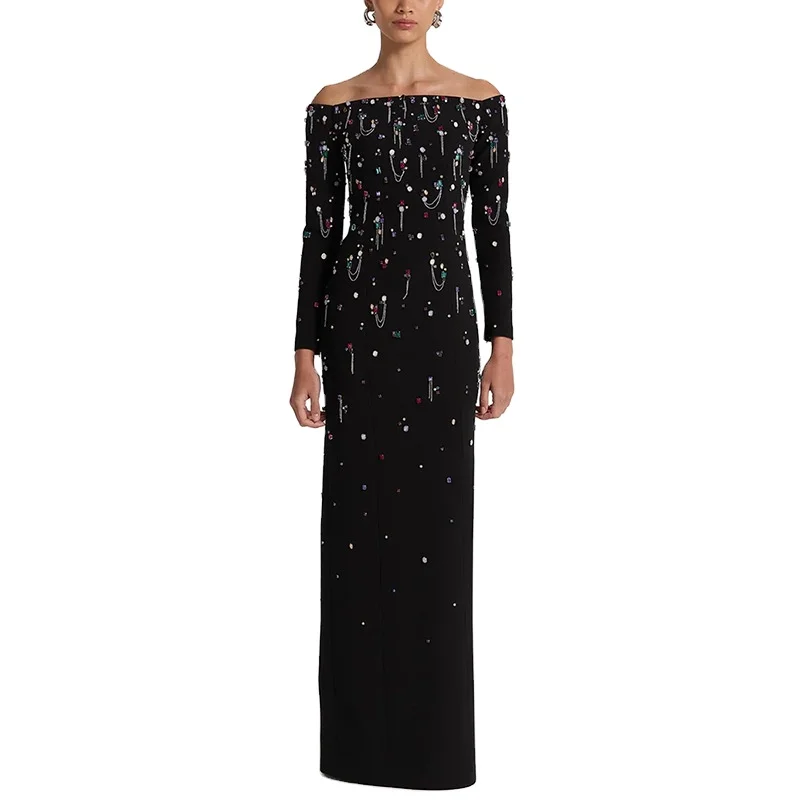 Product Name: 2025 New Modest Evening Dress Robe Femme Rhinestone Bead Dess Long Sleeve Off Shoulder Design Luxury Women Evening Dresses Gown