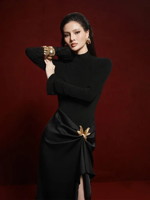 2025 New Satin Patchwork Long Elegant Party Dress High Quality Luxury Fashion Black Elegant Party Dresses Fashion Prom Dresses