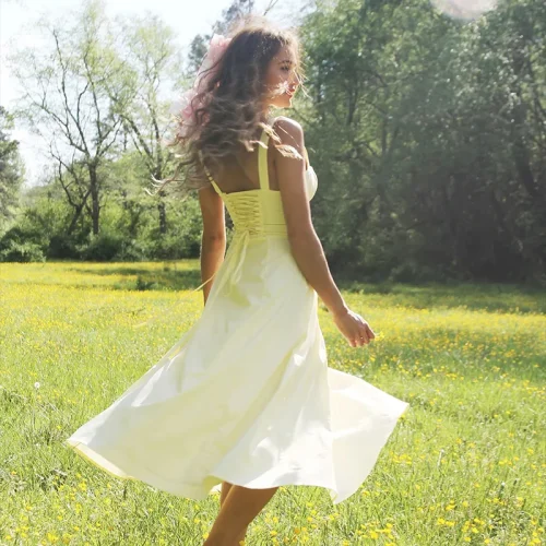 Product Name: 2025 Olaesa New Design Fashion Summer Casual Sleeveless French Vintage Style Spaghetti Strap A-Line Dress