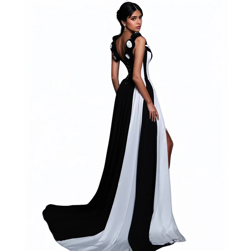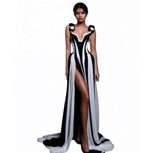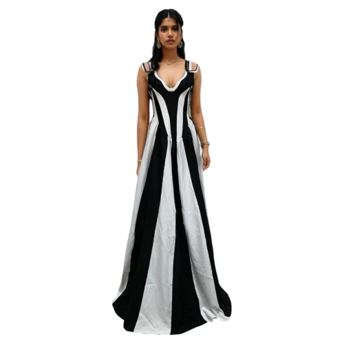 2025 Sexy High Fork Sleeveless Bandage Dress Women Elegant Flower Black &White Stripe Vacation Birthday Party Maxi Dresses