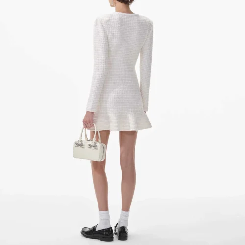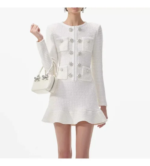 Product Name: 2025 Spring Fashion White Casual Dress Elegant Short Evening Dress Long Sleeves Rhinestone Party Dress