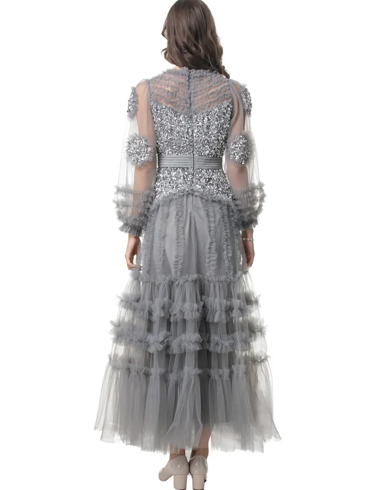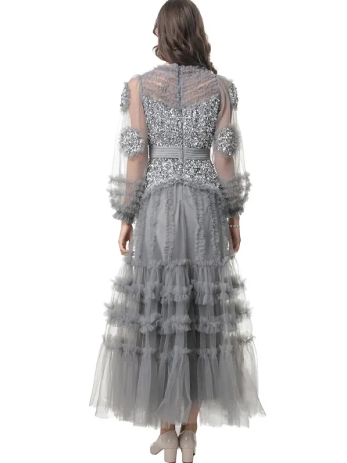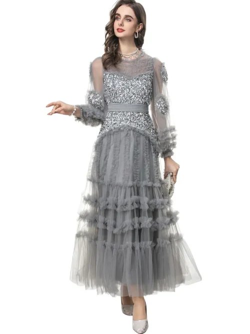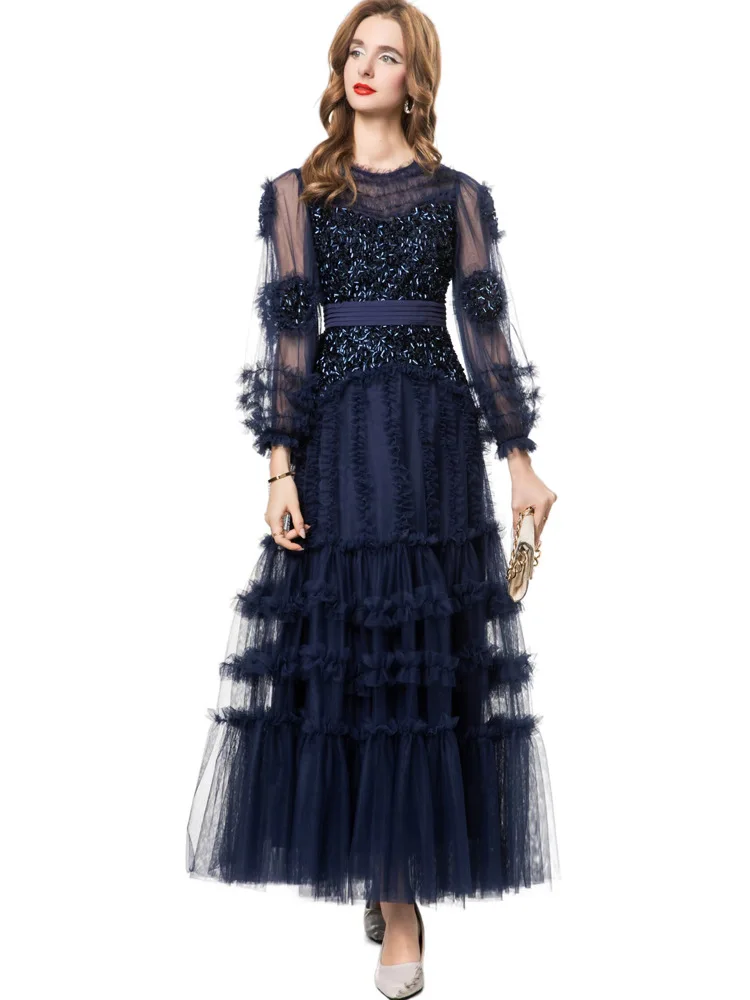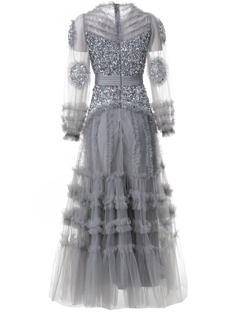 Product Name: 2025 Spring Party Lady Evening Gowns 4XL 2XL Sizes Modern A-Line Diamond Beading Cascading Ruffle Floral Long Sleeve Sexy Tulle
