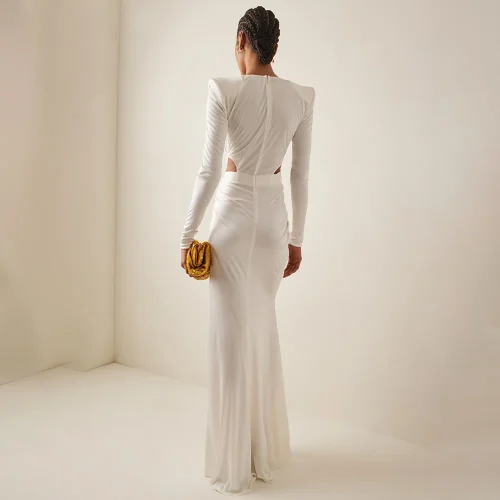 Product Name: 2025 Spring Romantic Ball Gown White Long-Sleeved Pleated Hollow V-Neck Cross-Strap Party Dress